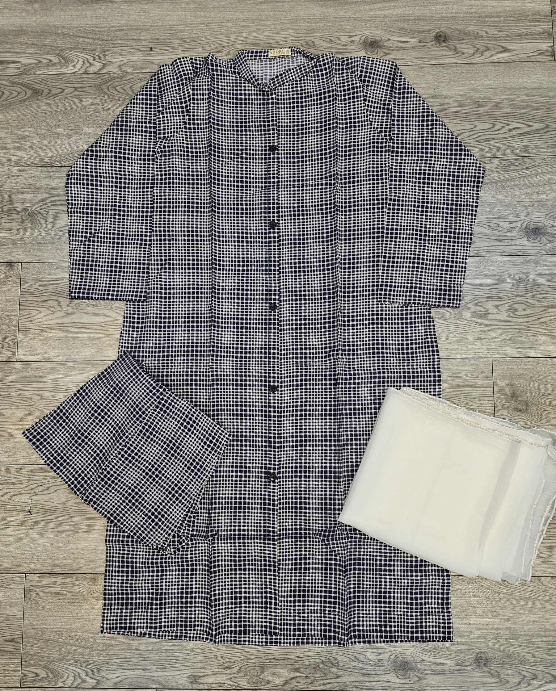 Navy Blue Stone Work Kameez | Silk Sharara & Chiffon Dupatta | 4-Side Embroidered | Sizes Up to 8XL
