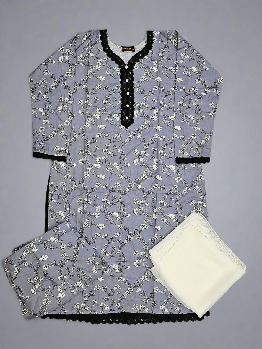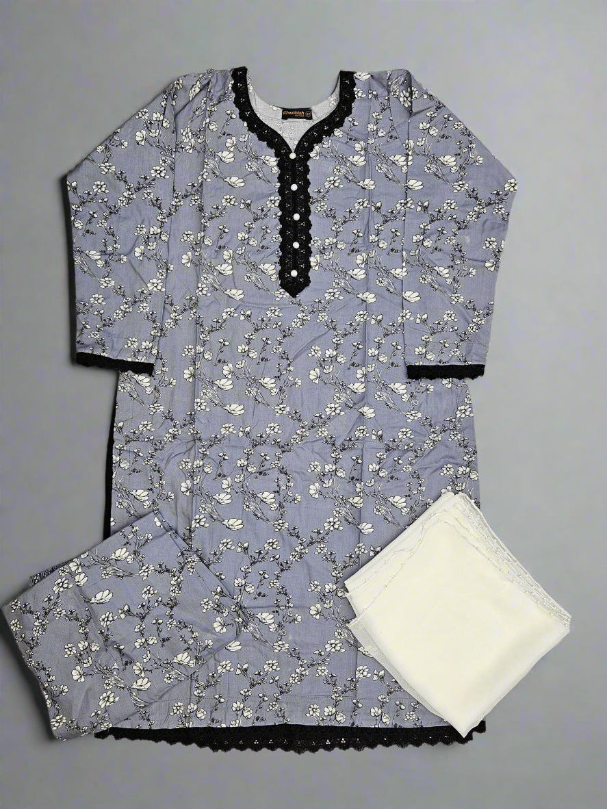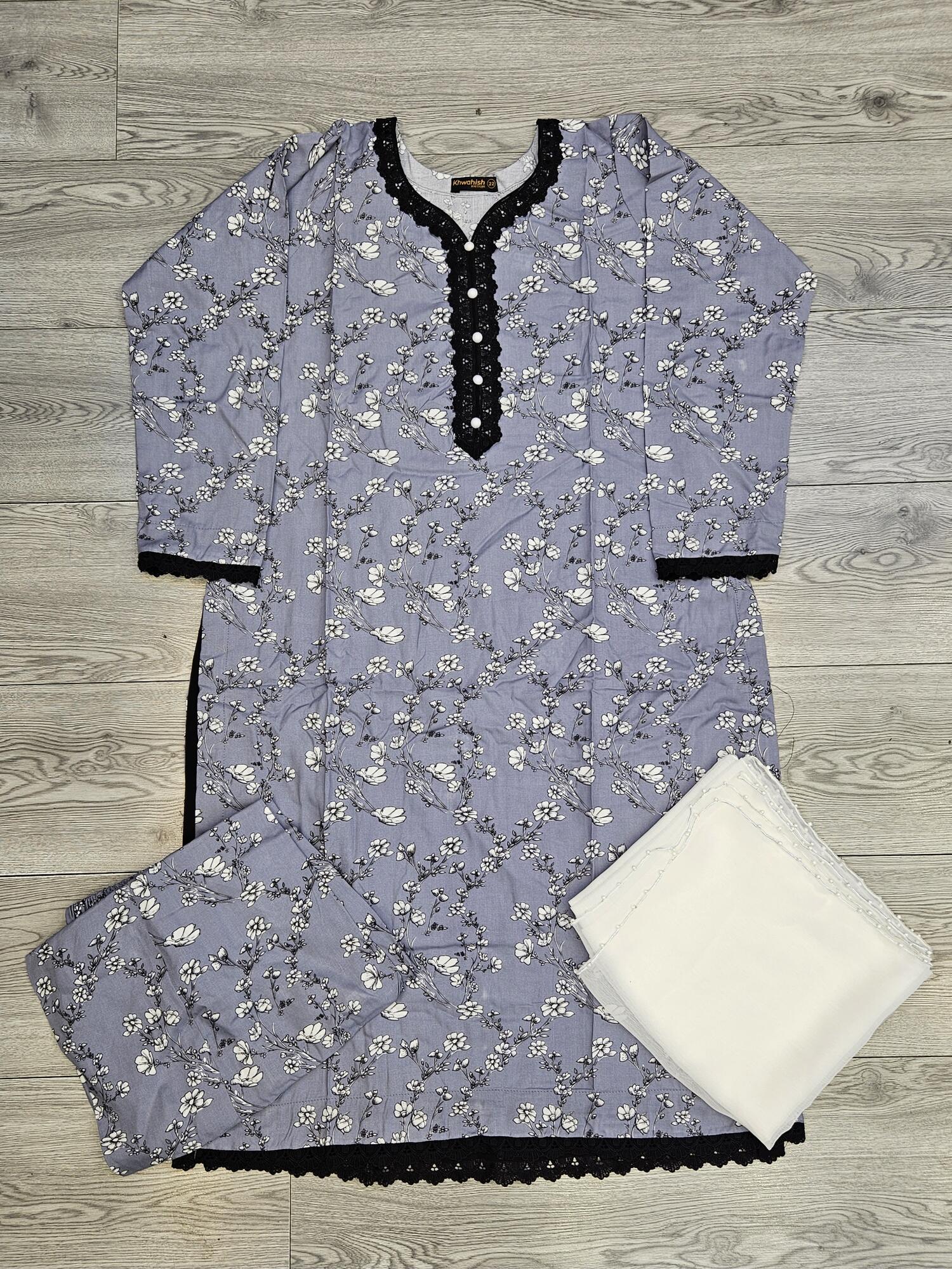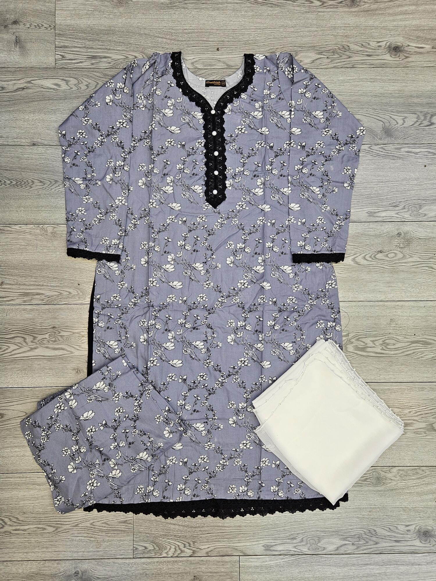 Navy Blue Stone Work Kameez | Silk Sharara & Chiffon Dupatta | 4-Side Embroidered | Sizes Up to 8XL