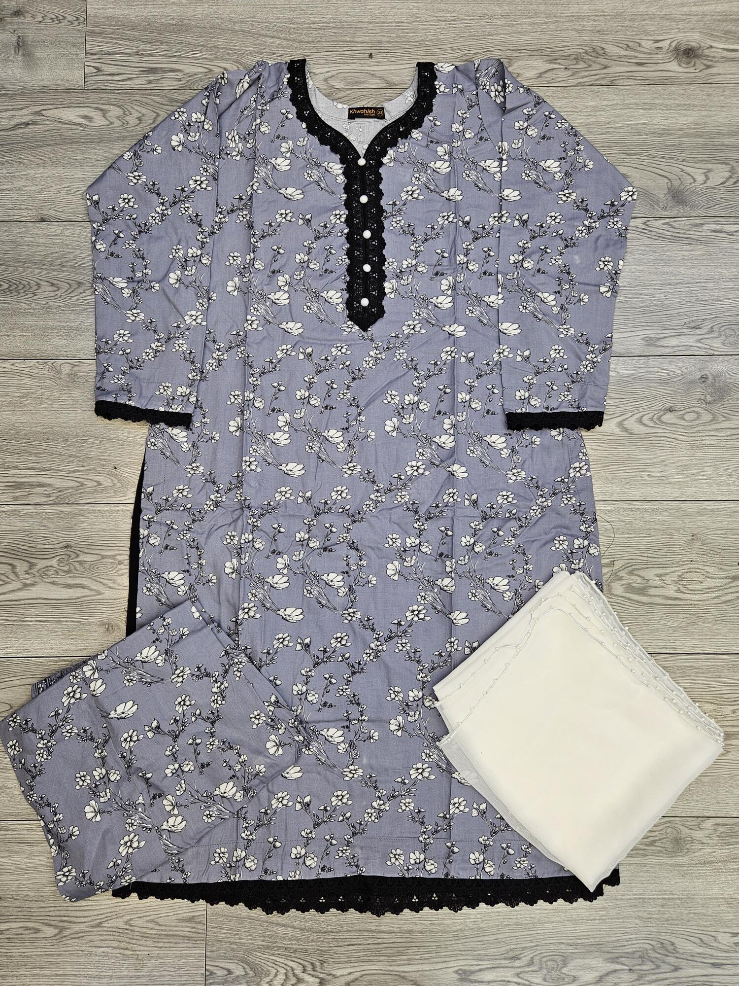 ELF Light Grey Hand Embellished Organza Kameez | Pink Crystal Detail | Sizes Up to 8XL