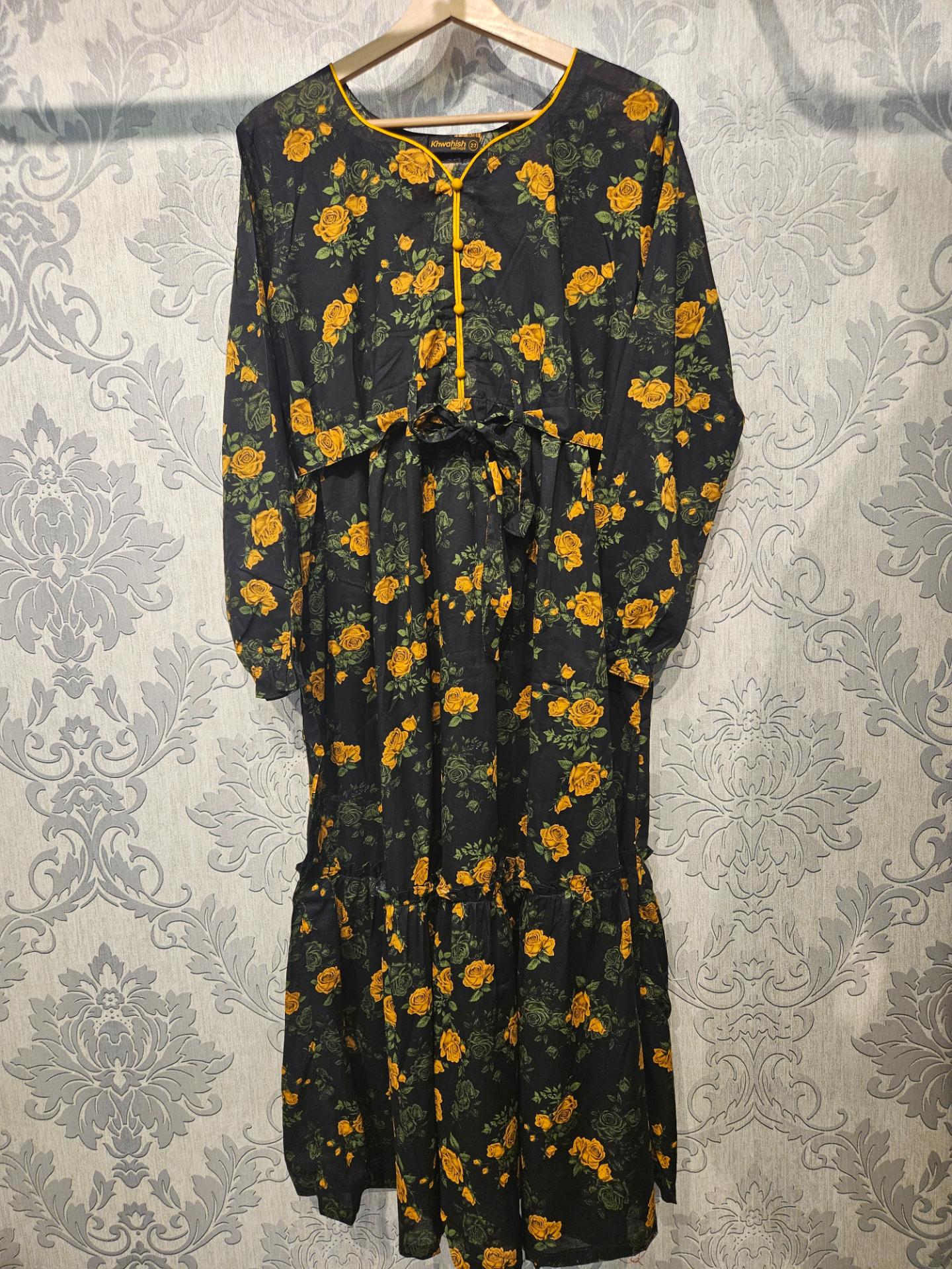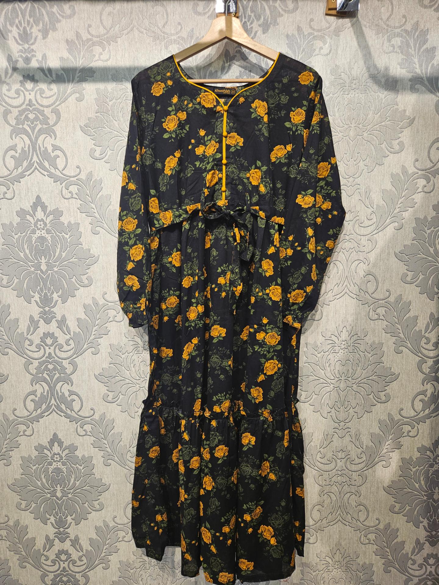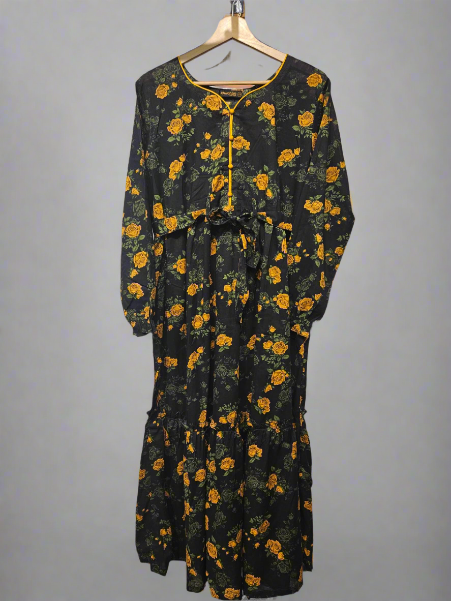 Women's Casual Cotton Dress - Black Beige Green Floral Print Summer Holiday Vacation Dress