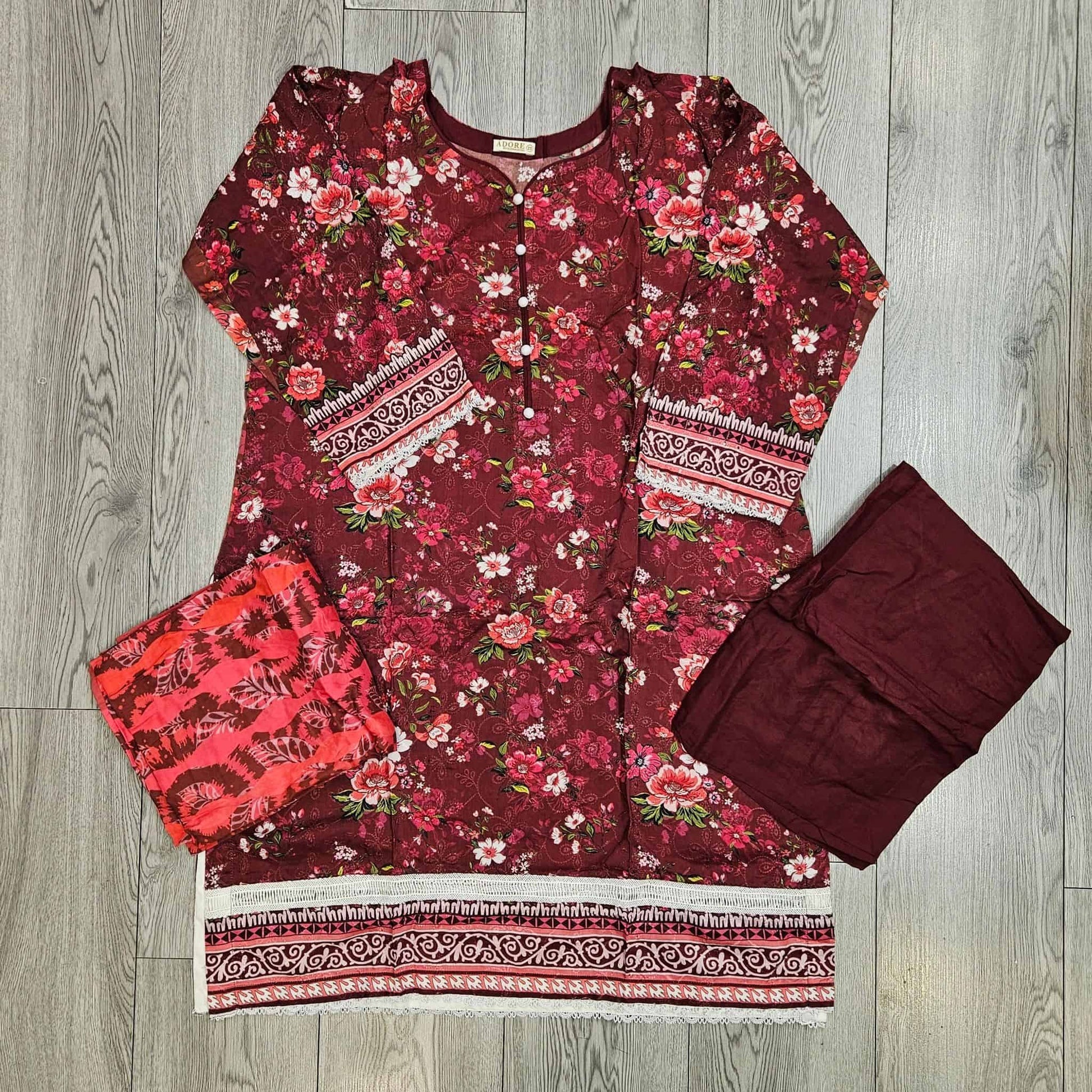 Navy Blue, Plum, Purple & Black Floral Print Linen Shalwar Kameez | Chikan Kari Embroidery | Winter Wear (Small-7XL)