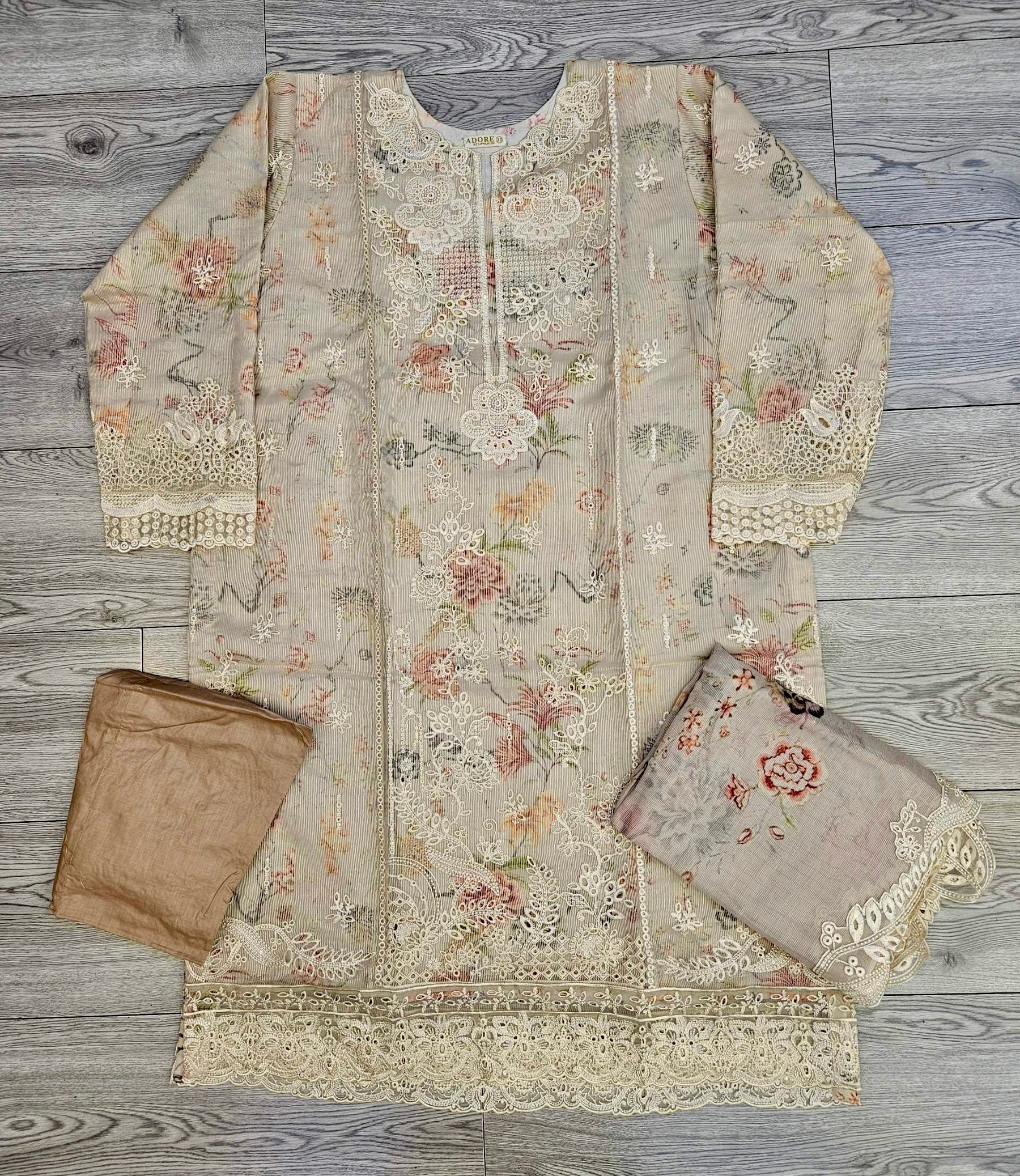 Rust Orange Floral Linen Viscose Suit | Chikan Embroidery Shalwar Kameez | Sizes Up to 8XL