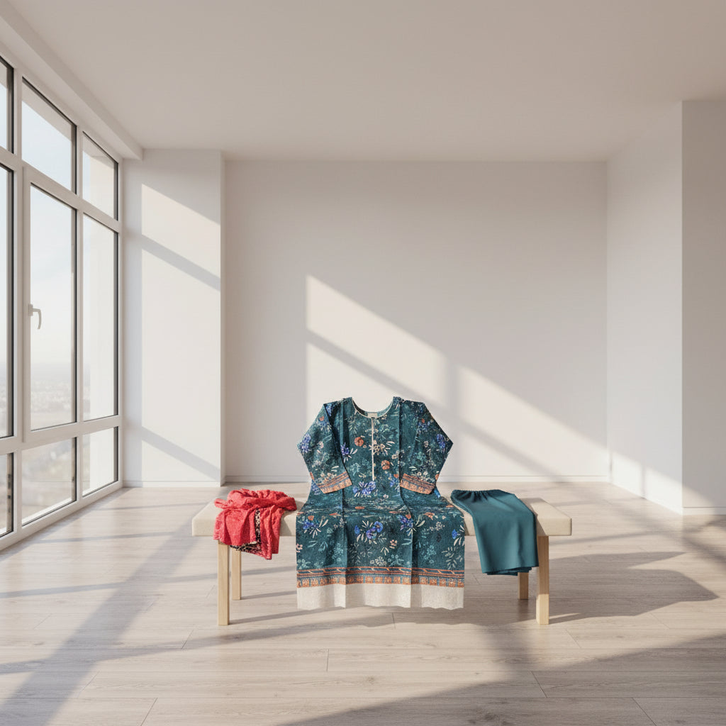Teal Blue Linen Viscose Shalwar Kameez | Chikan Embroidery | Sizes Up to 8XL