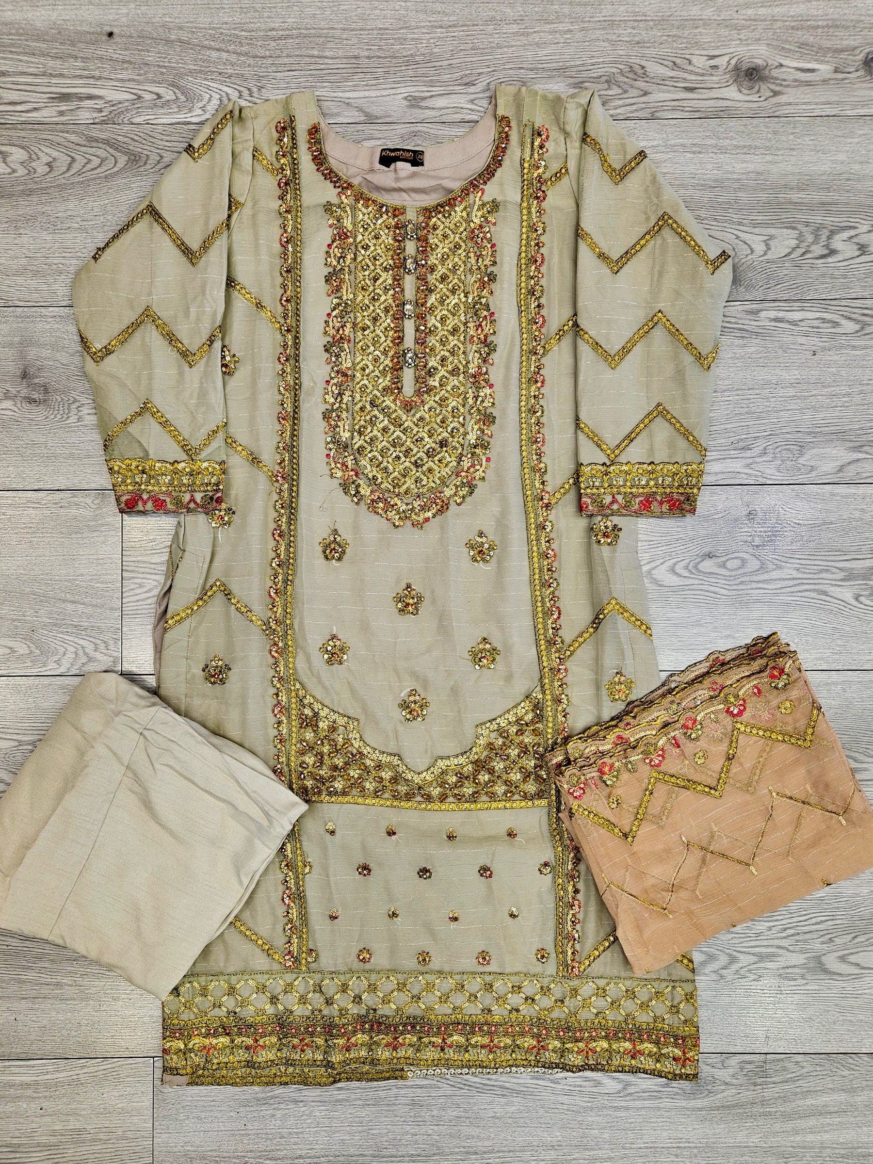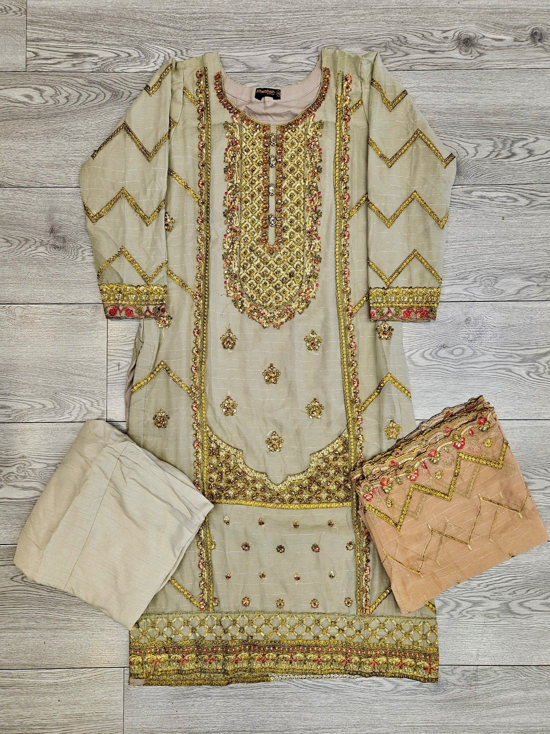 AG swamp green and gold colour hand embellished in pearls crystals stones