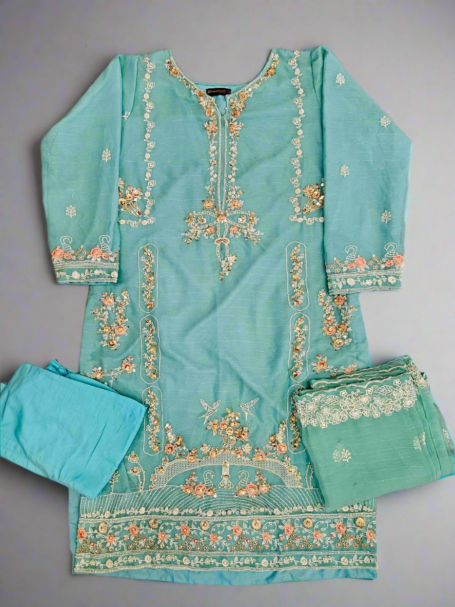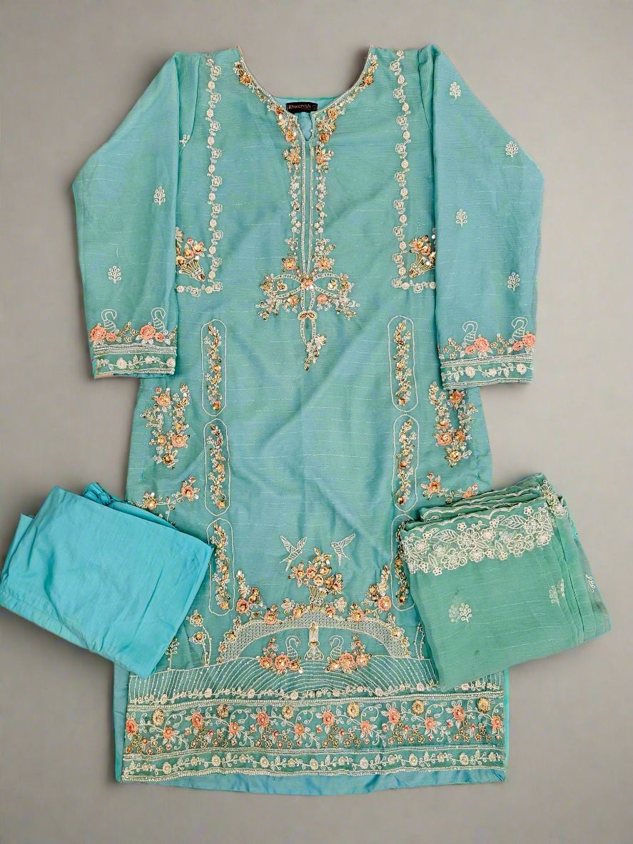 AG turquoise blue and peach colour hand embellished in pearls crystals stones