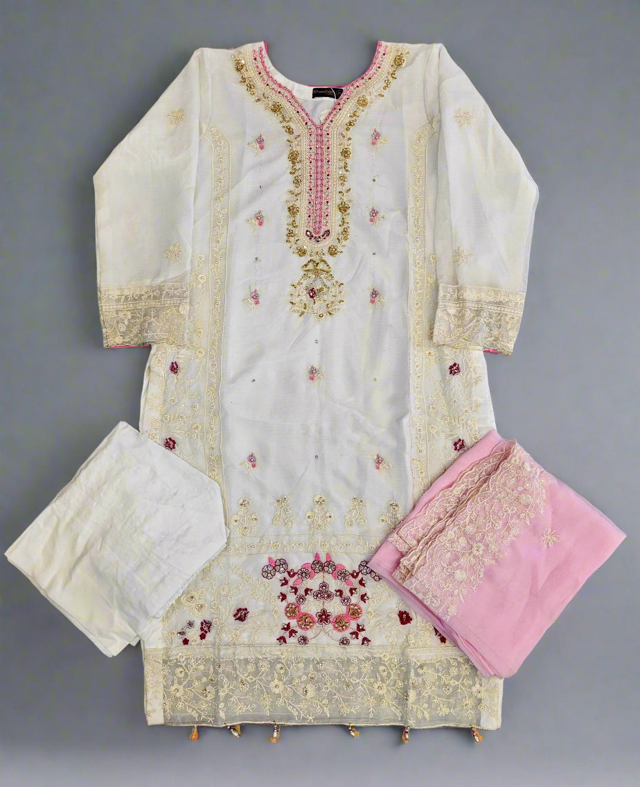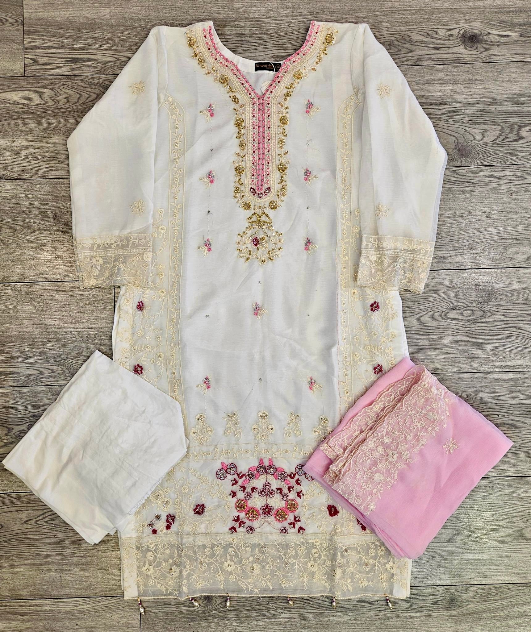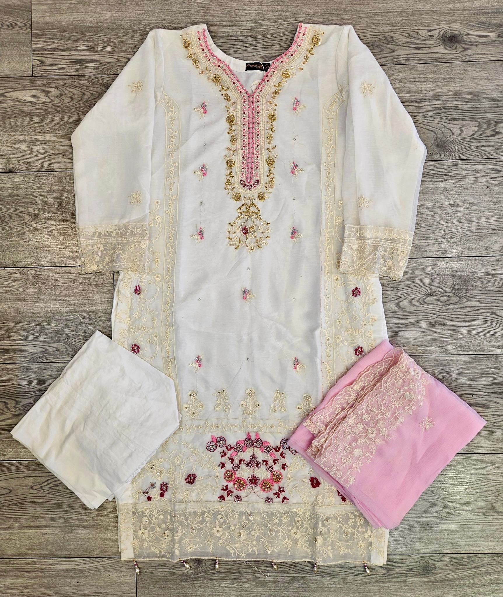 AG white and bubblegum pink colour hand embellished in pearls crystals stones