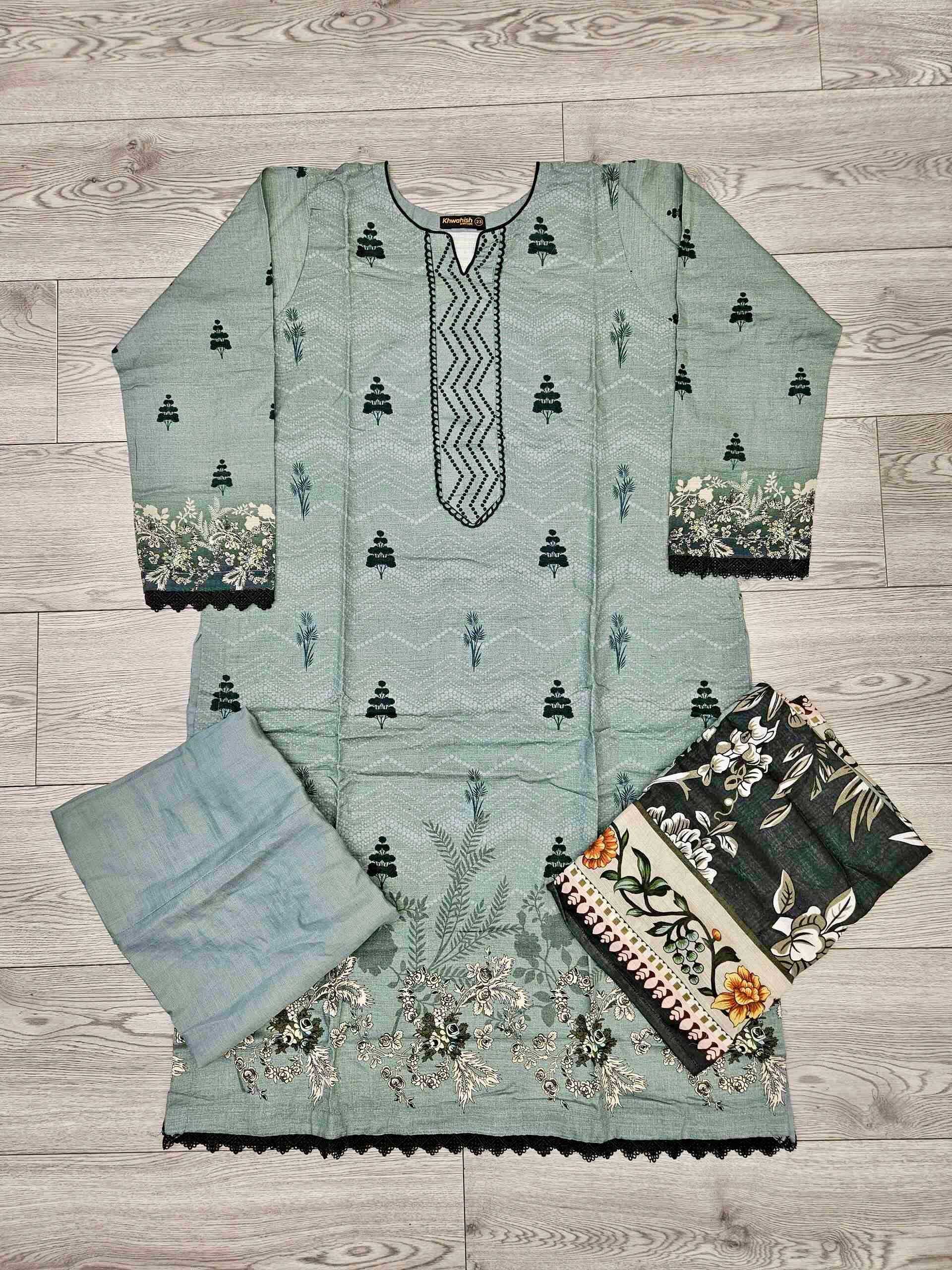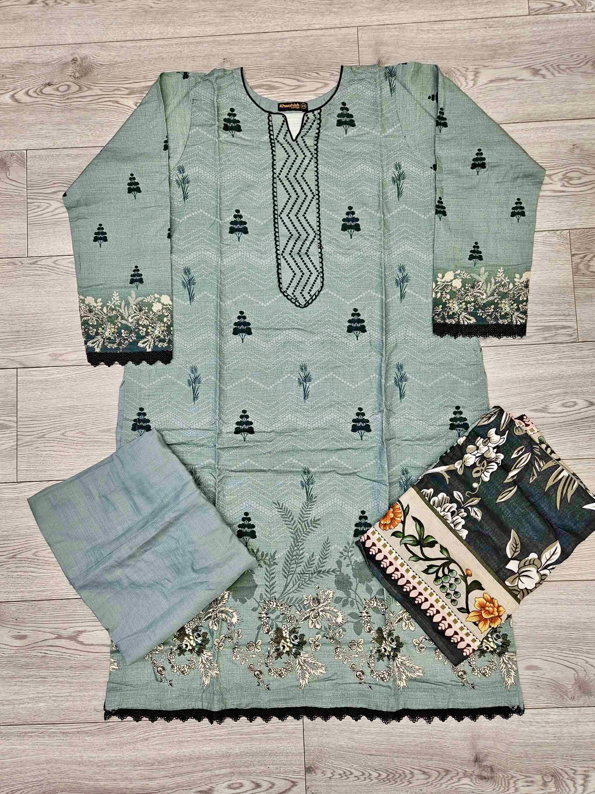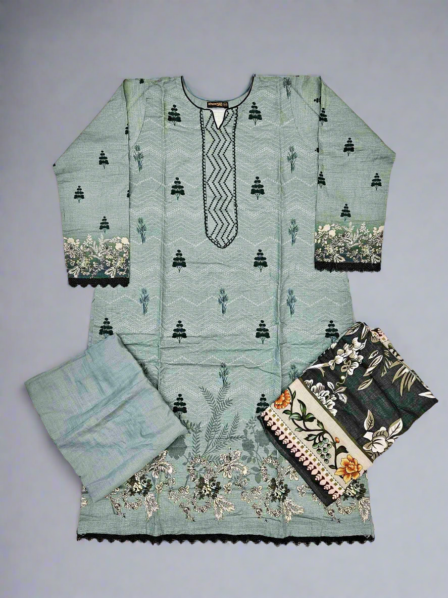 Designer blue-grey and black colour winter collection khaddar fabric with khaddar shawl