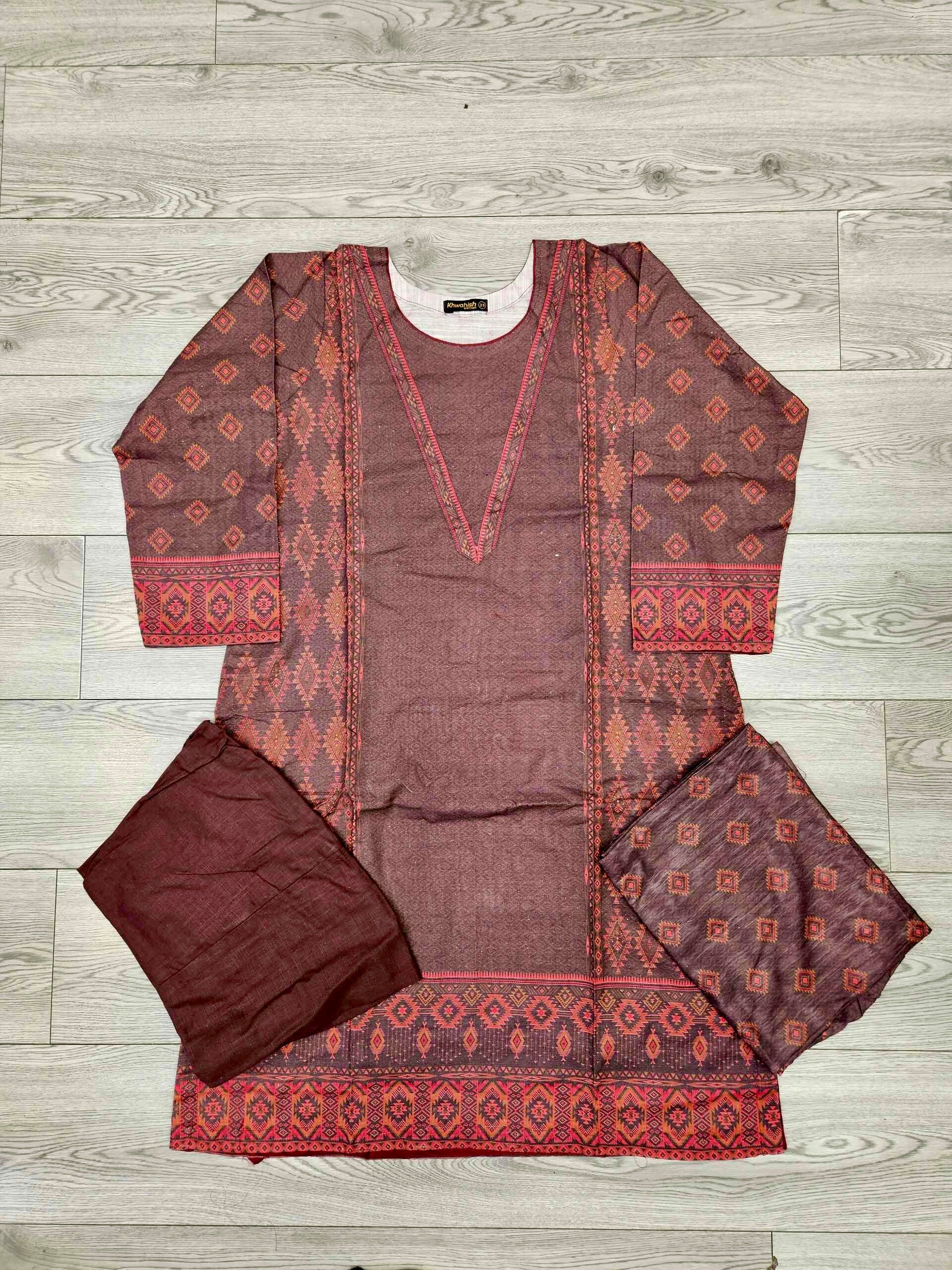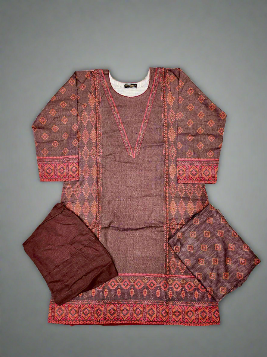 Designer crimson maroon colour winter collection khaddar fabric with khaddar shawl