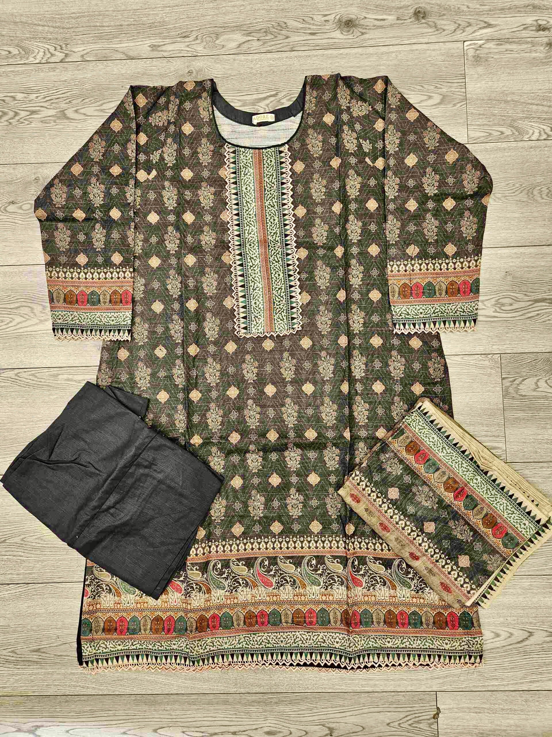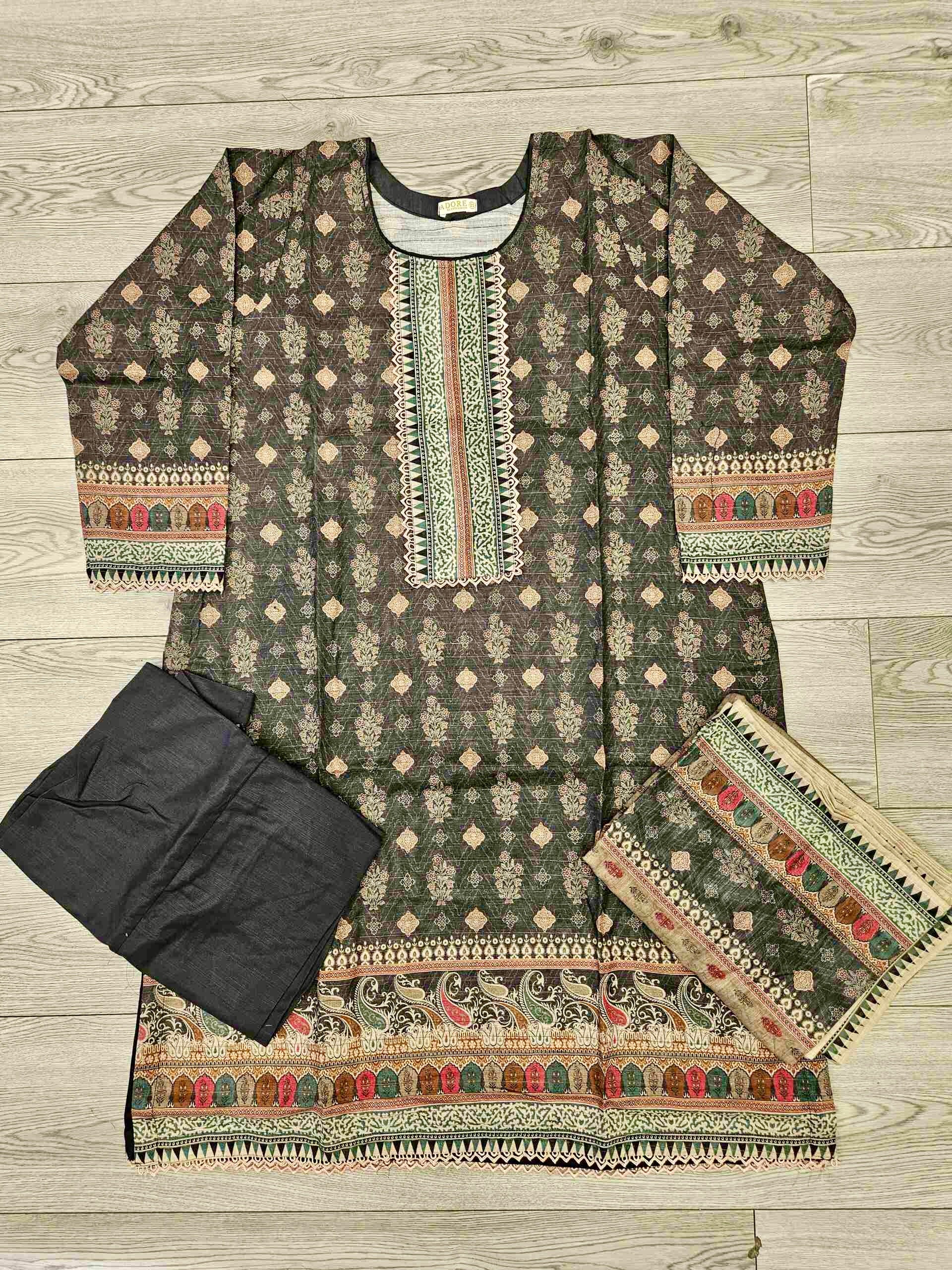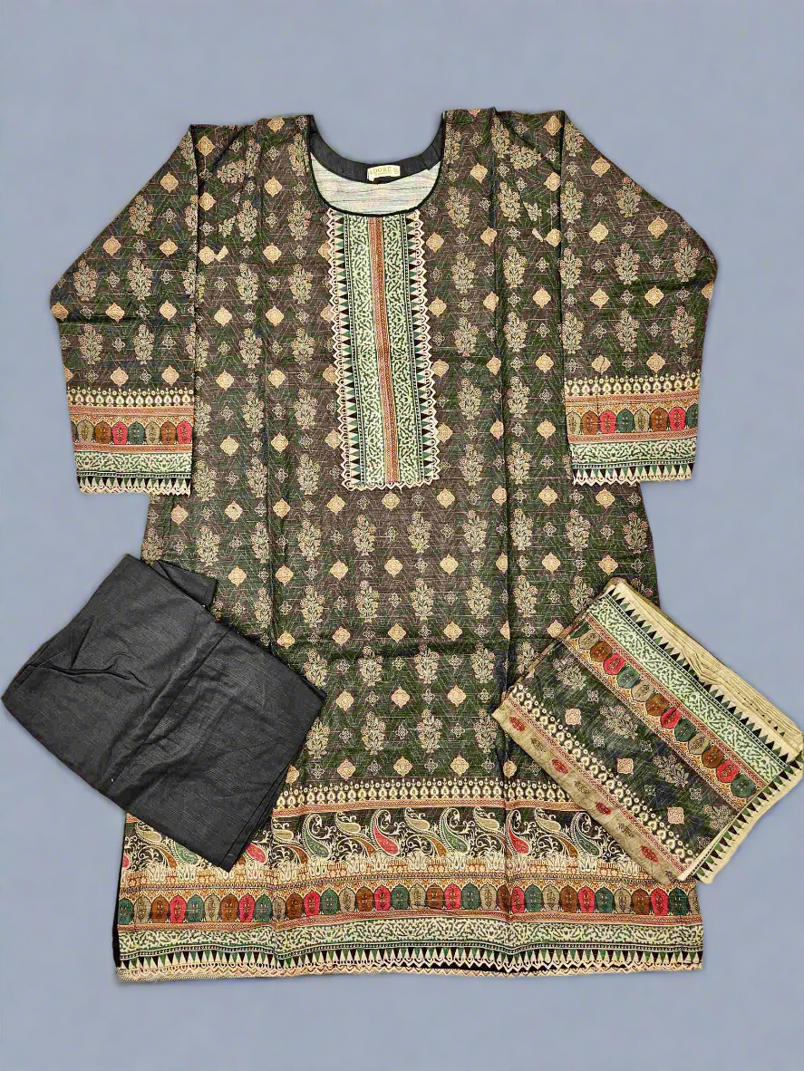 Designer charcoal grey and pinkish red colour winter collection khaddar fabric with khaddar shawl