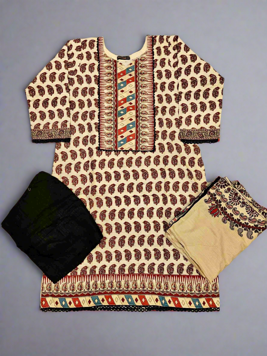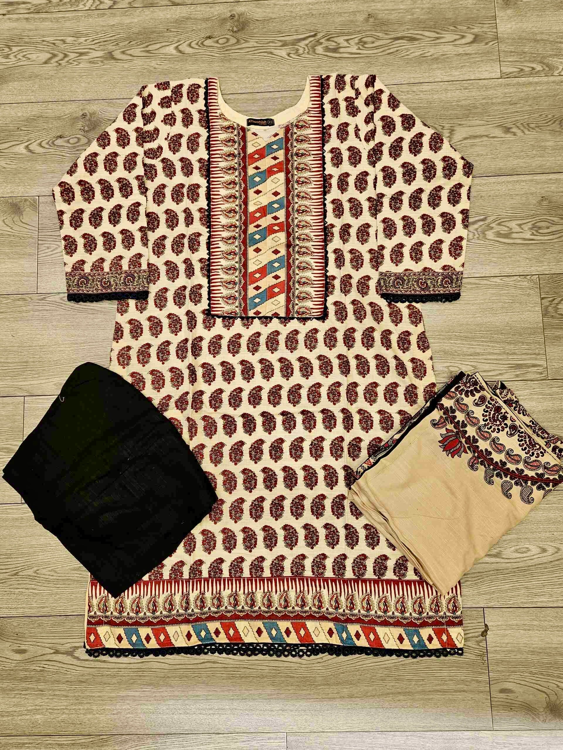 Designer off white and maroon colour winter collection khaddar fabric with khaddar shawl