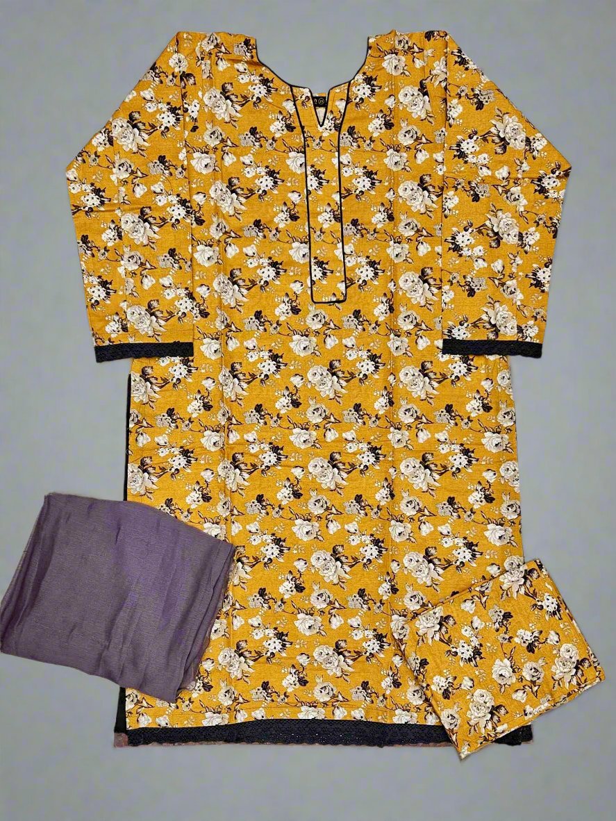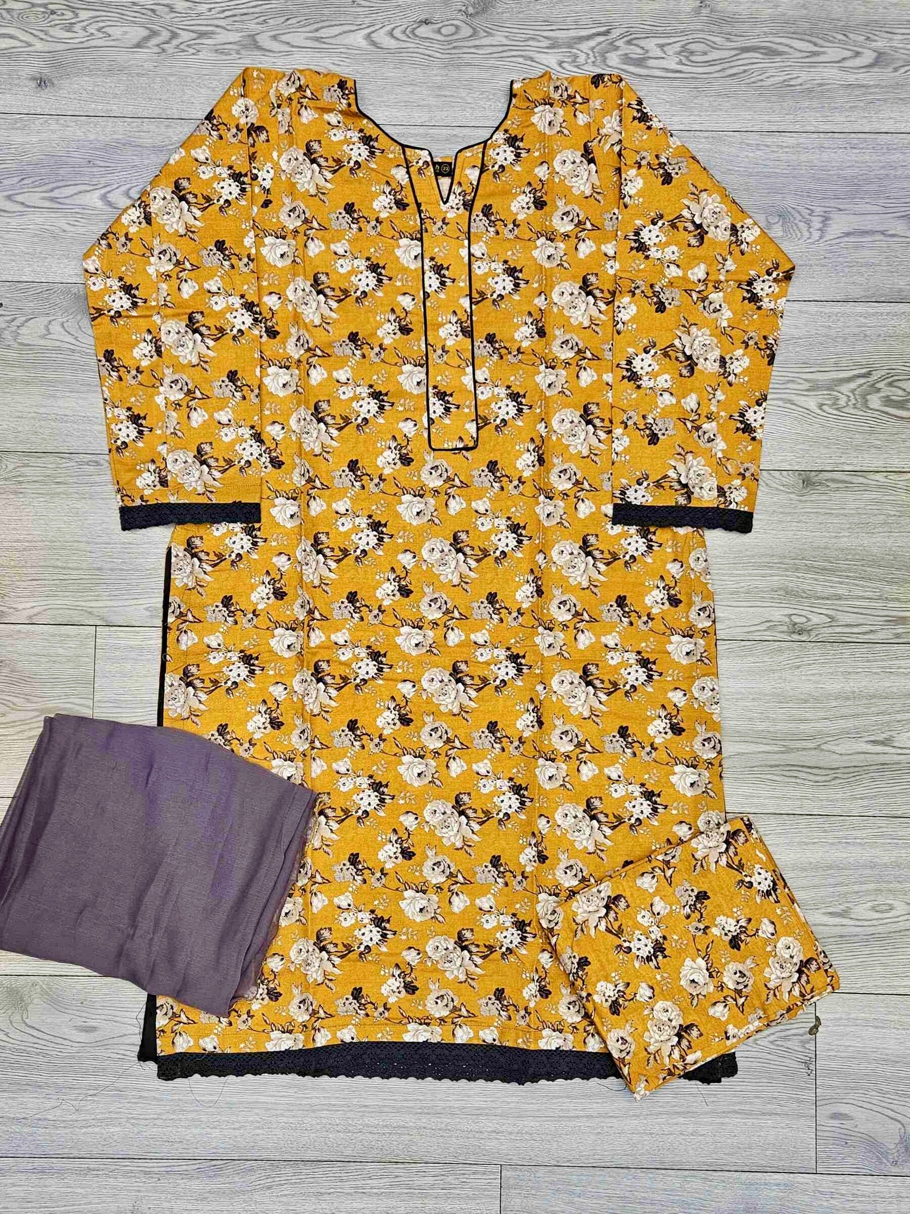 Rust Orange Floral Linen Viscose Suit | Chikan Embroidery Shalwar Kameez | Sizes Up to 8XL