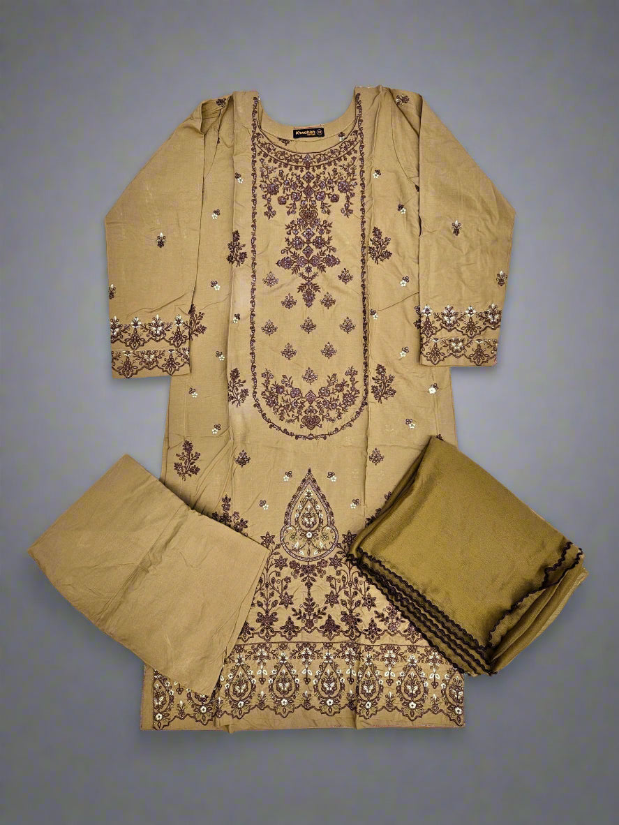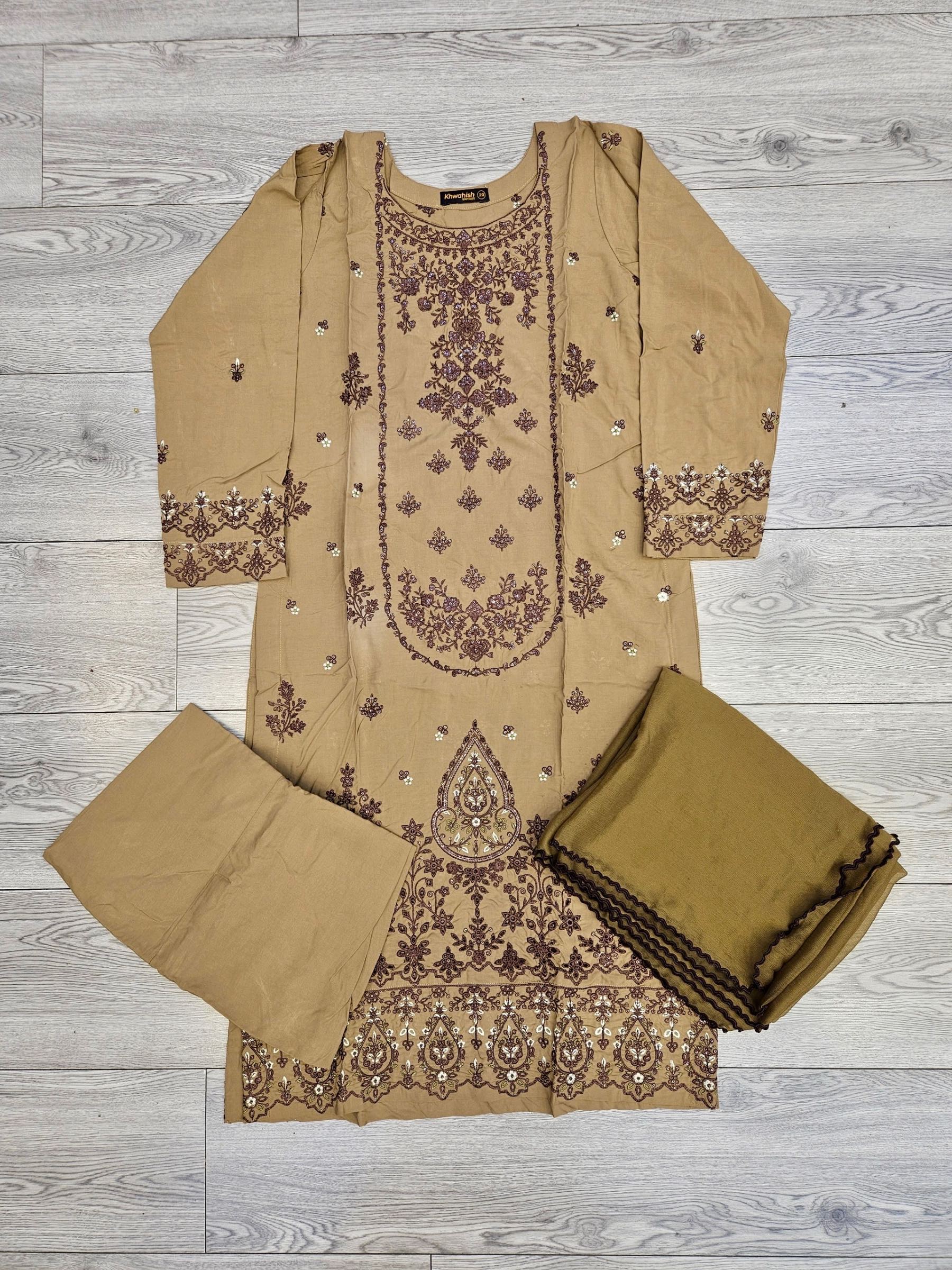 Rust Orange Floral Linen Viscose Suit | Chikan Embroidery Shalwar Kameez | Sizes Up to 8XL