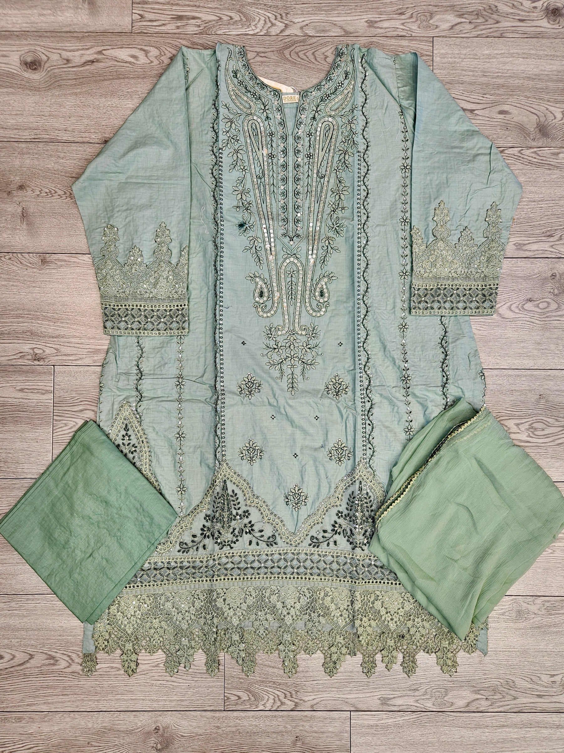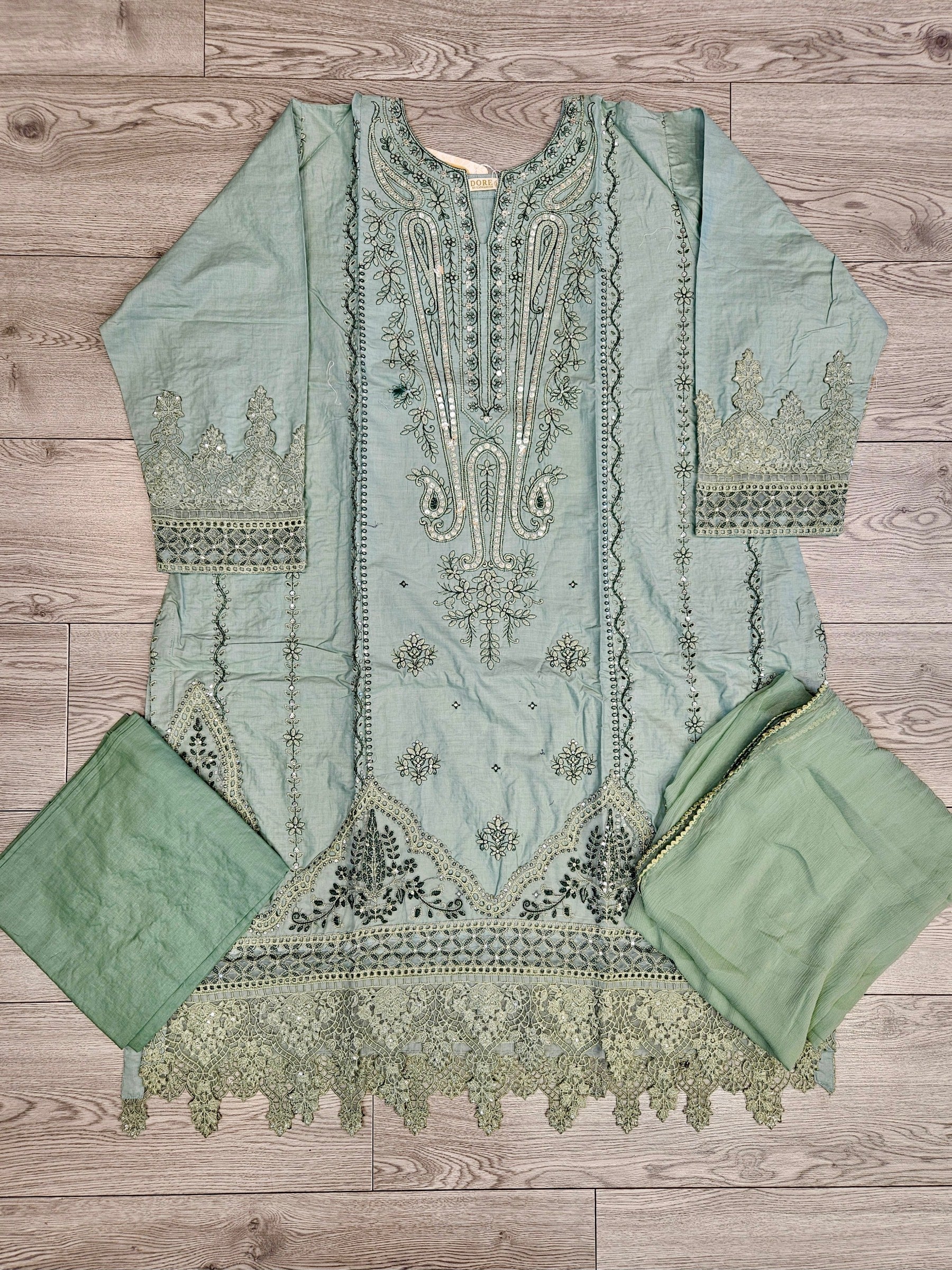 QMR parakeet green and dark green colour thread and laser cut