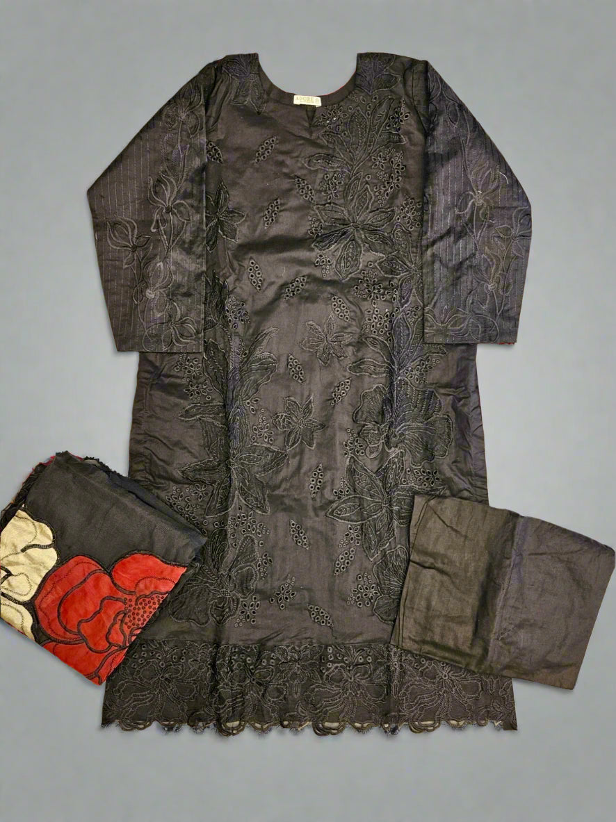 Rust Orange Floral Linen Viscose Suit | Chikan Embroidery Shalwar Kameez | Sizes Up to 8XL