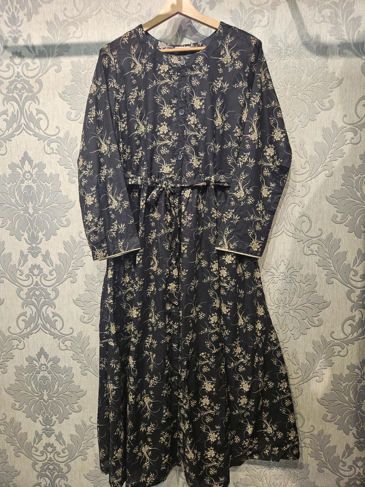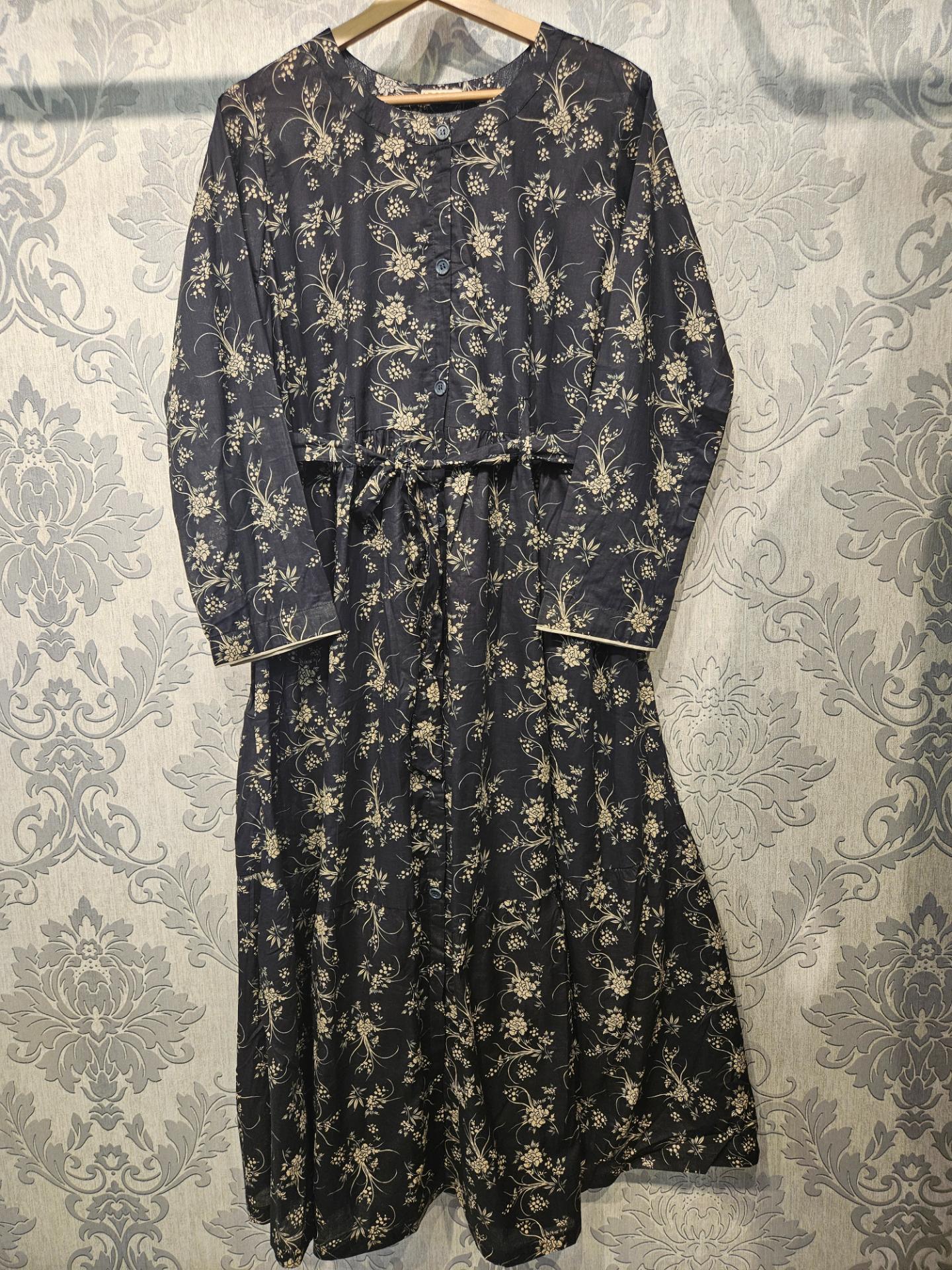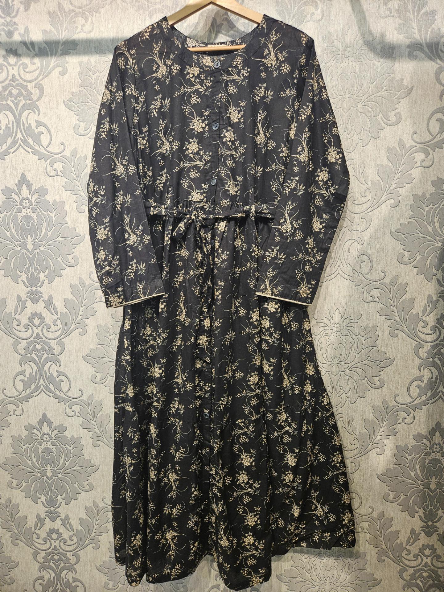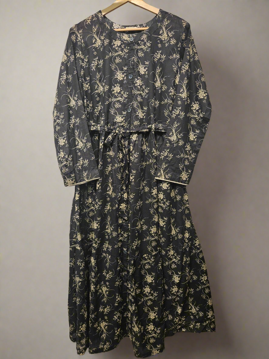 Women's Casual Cotton Dress - Black and Beige Floral Print Summer Holiday Vacation Dress