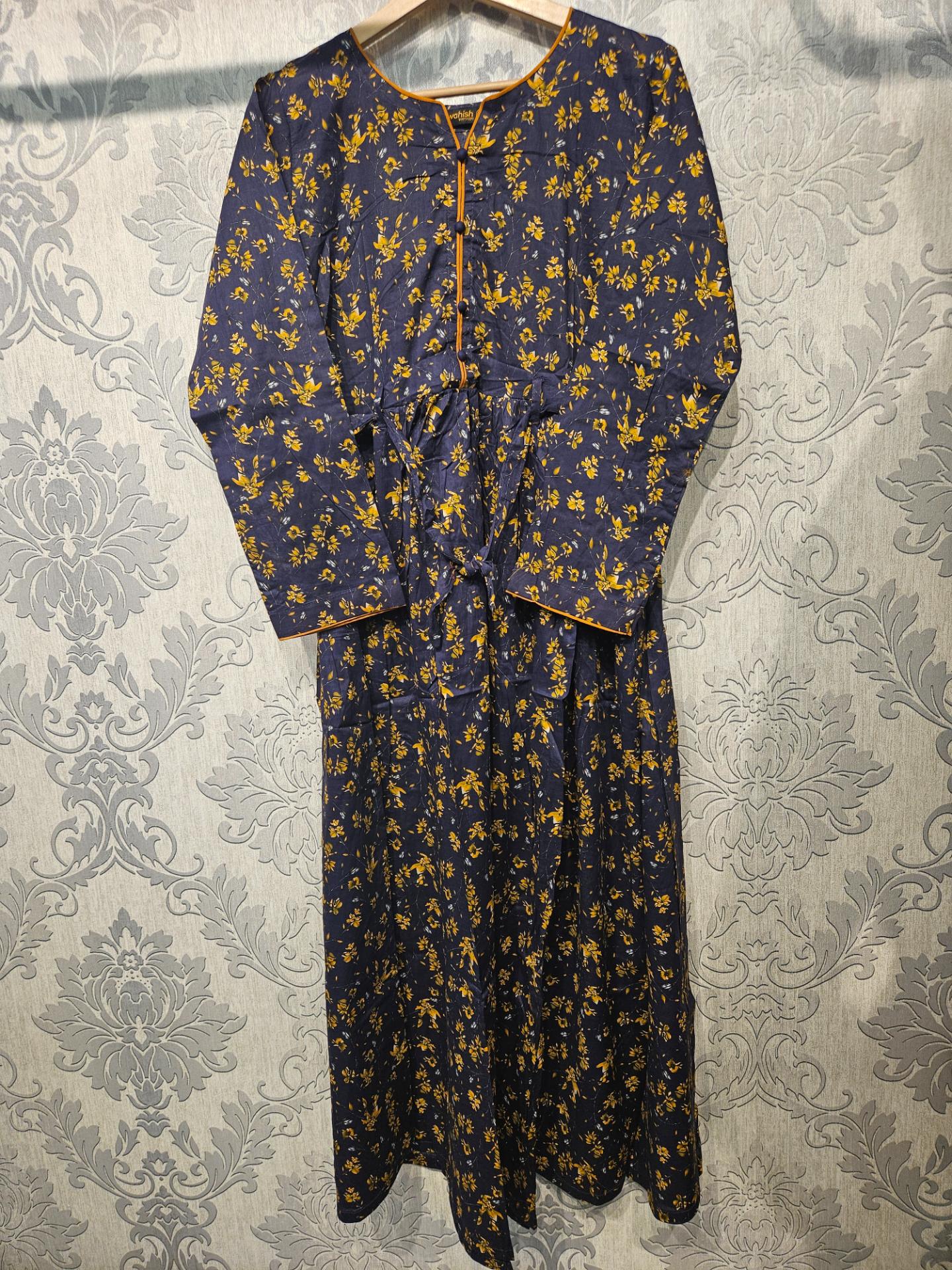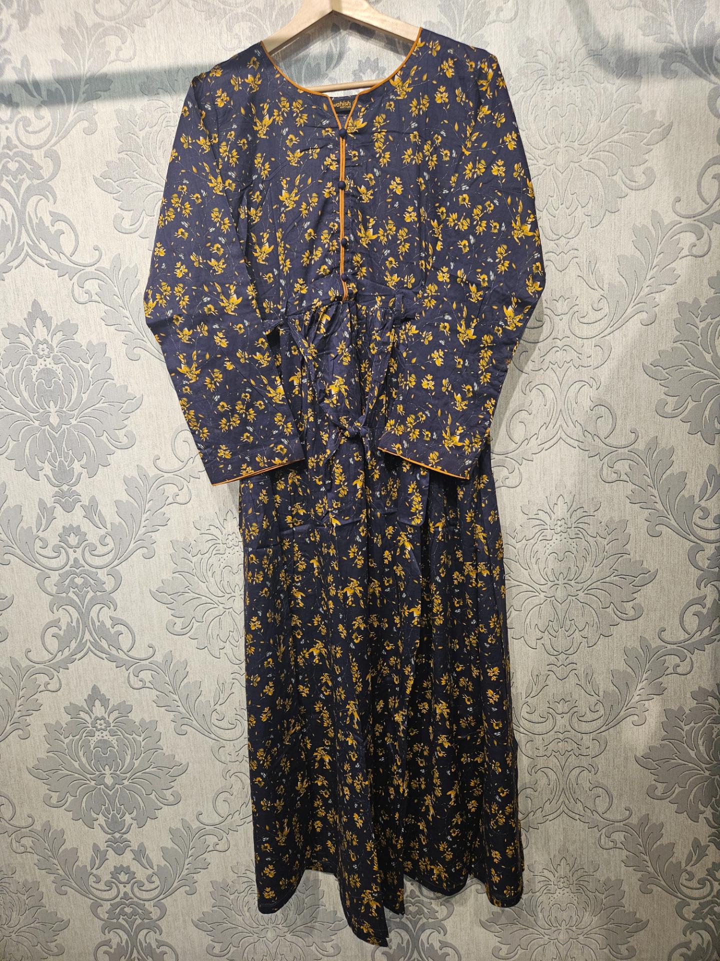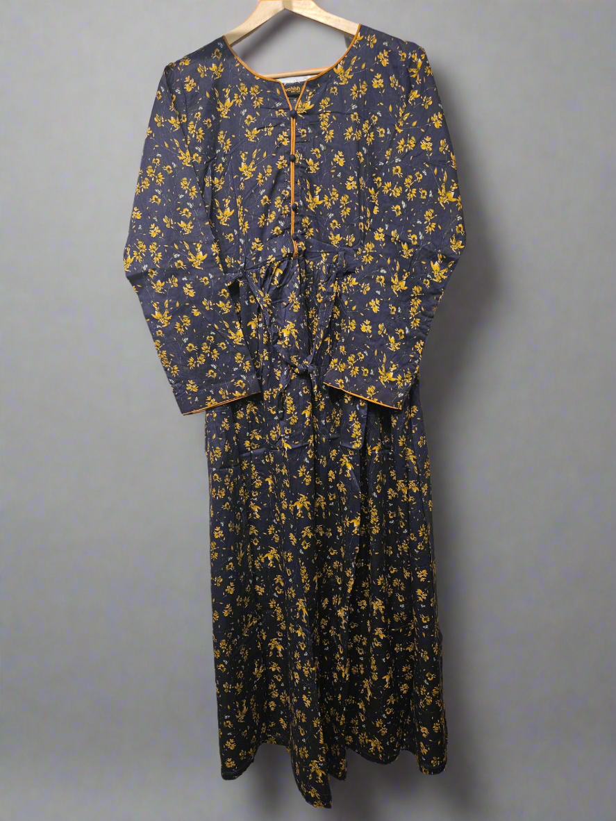 Women's Casual Cotton Dress - Navy Blue & Yellow Floral Print Summer Holiday Vacation Dress