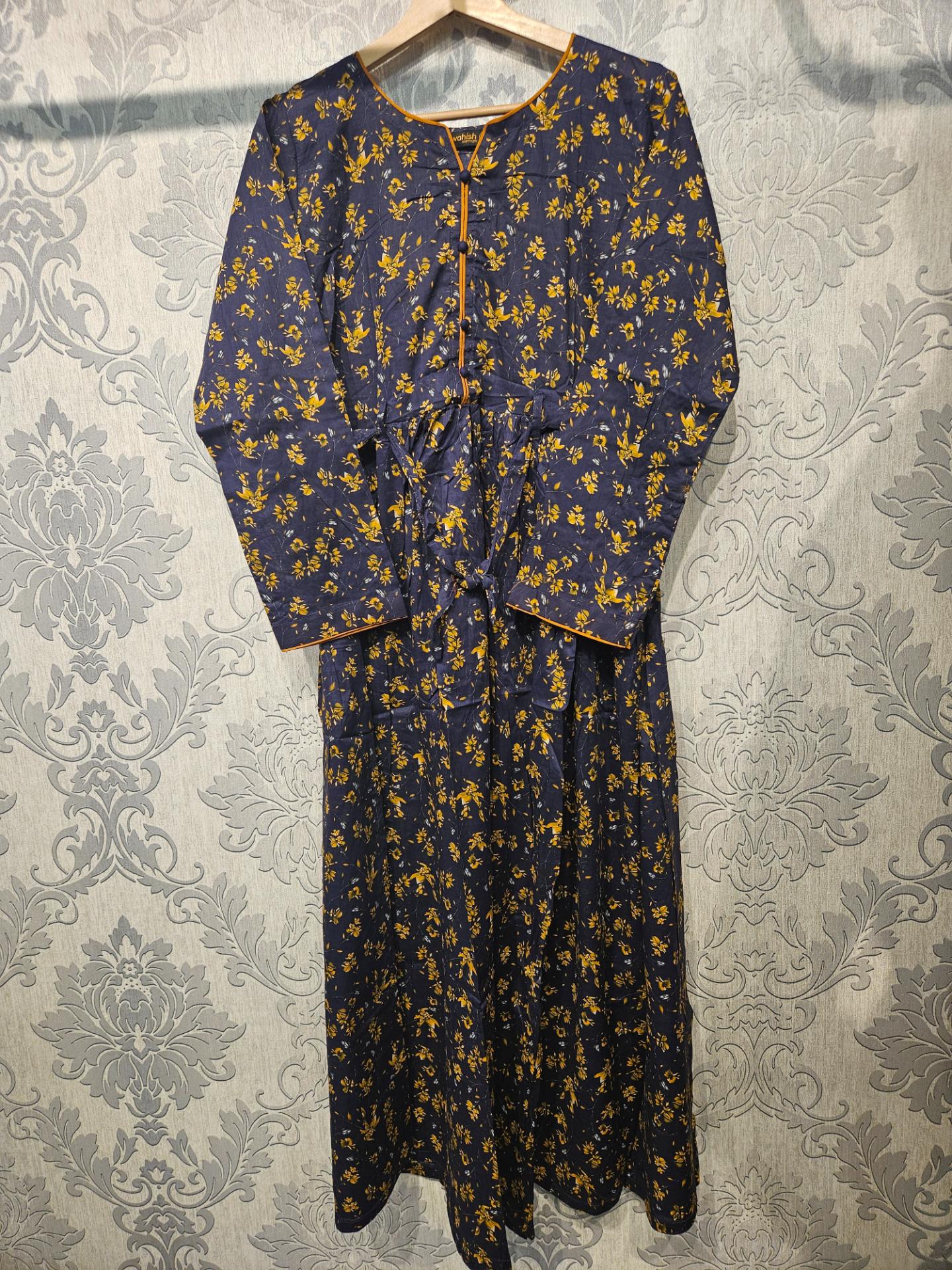 Navy Blue Stone Work Kameez | Silk Sharara & Chiffon Dupatta | 4-Side Embroidered | Sizes Up to 8XL