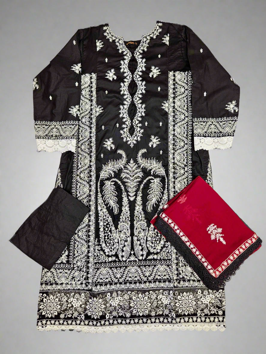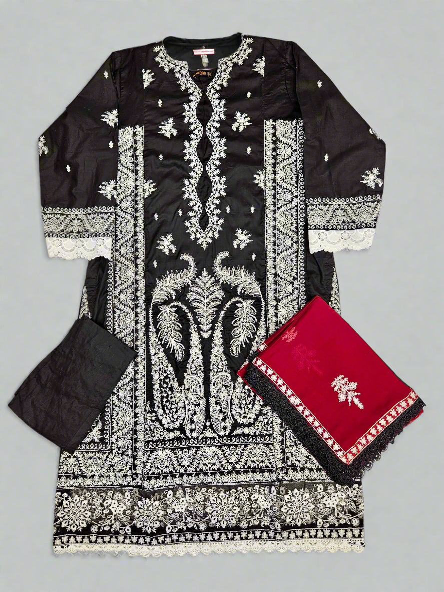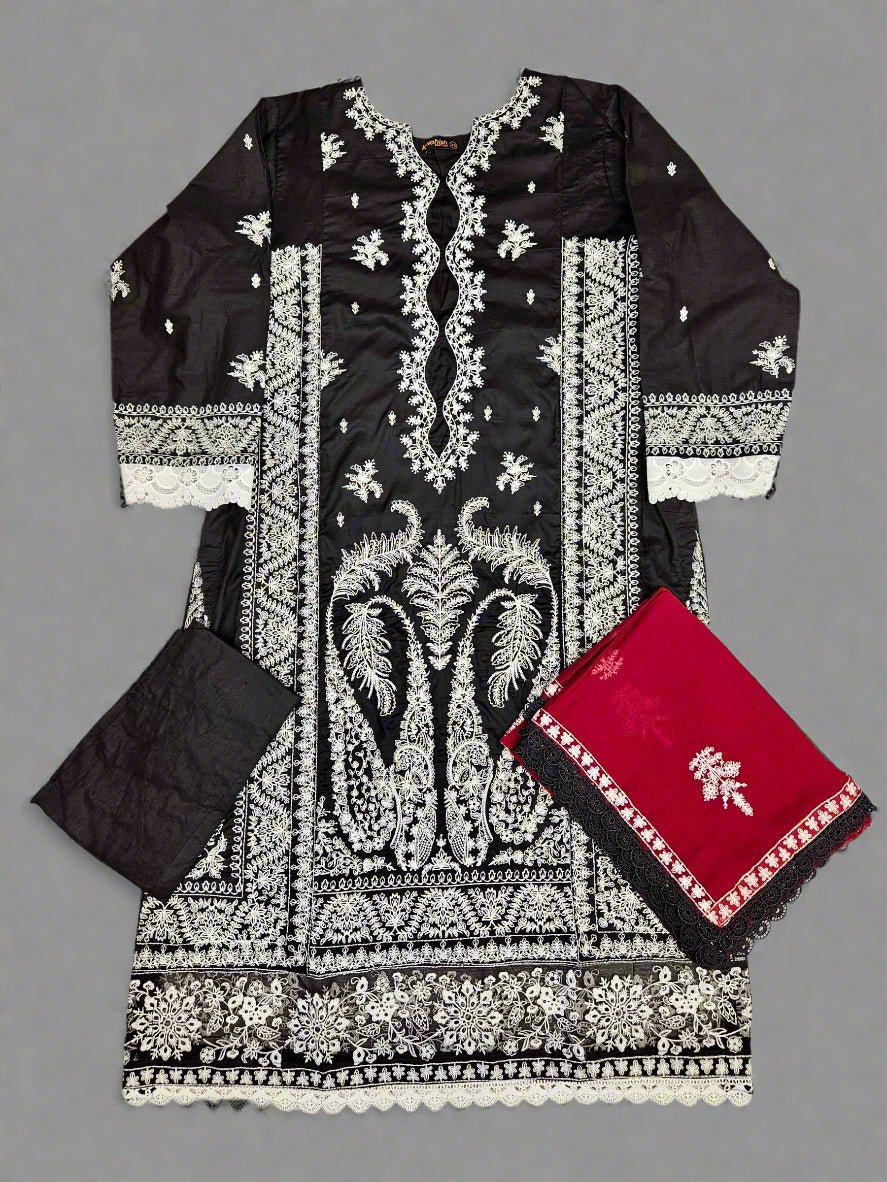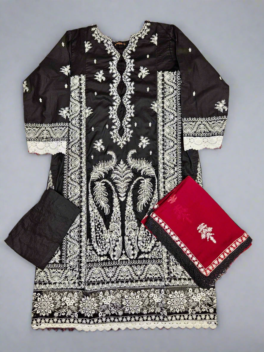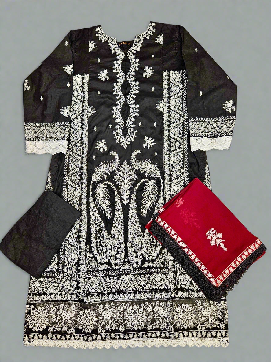 Rust Orange Floral Linen Viscose Suit | Chikan Embroidery Shalwar Kameez | Sizes Up to 8XL