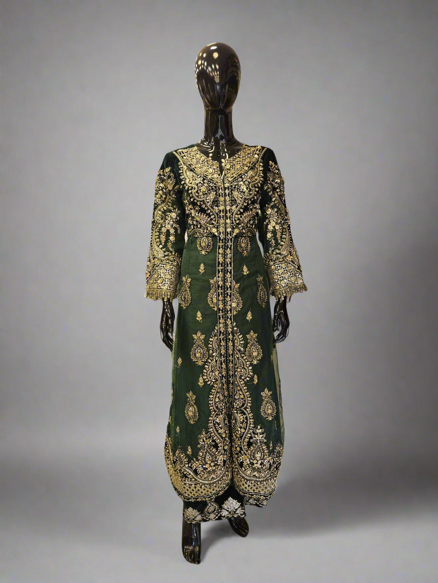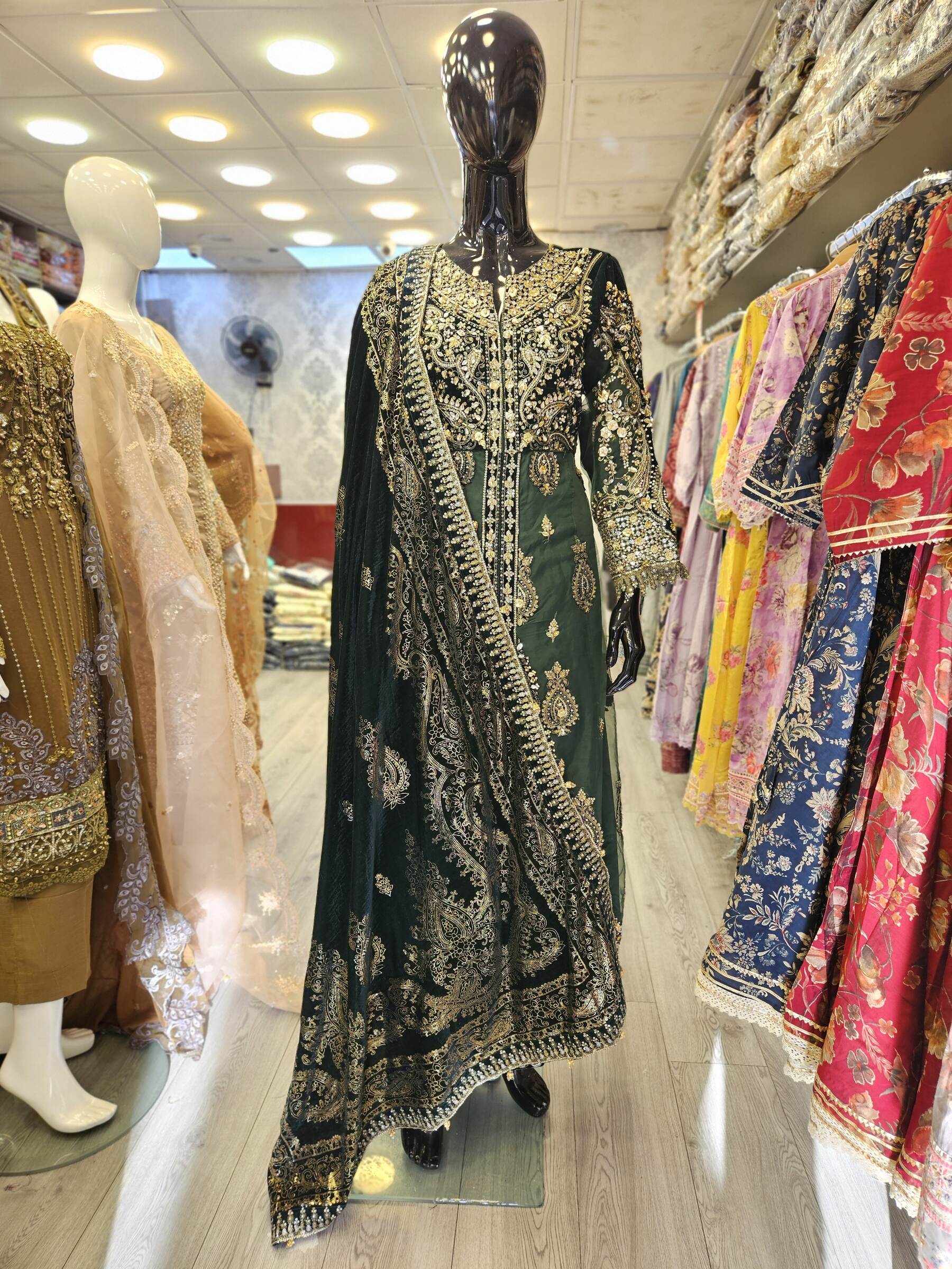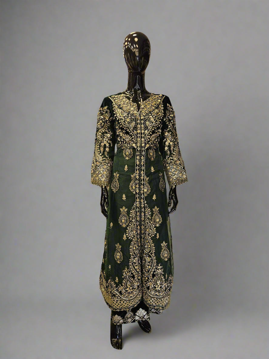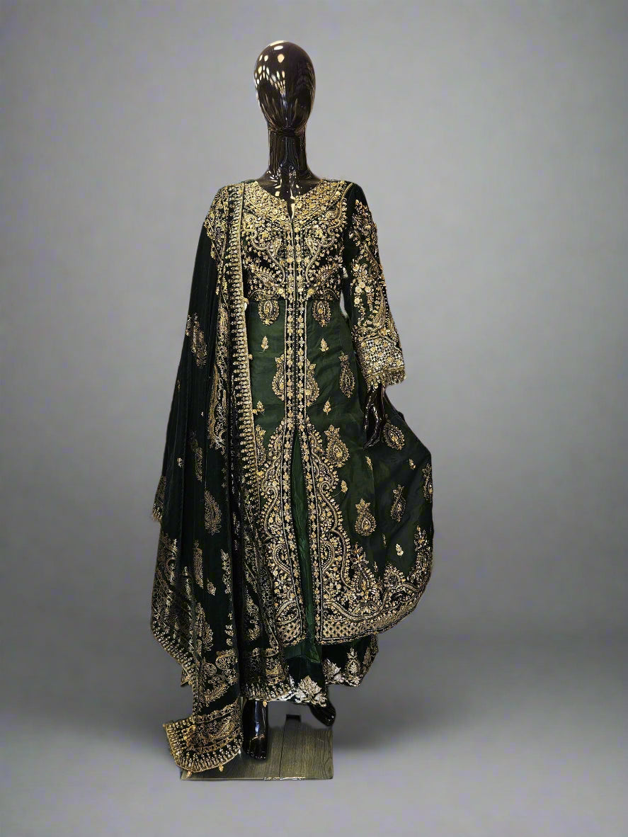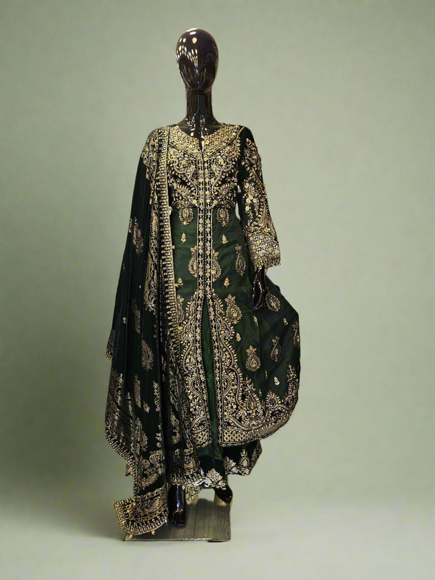 Navy Blue Stone Work Kameez | Silk Sharara & Chiffon Dupatta | 4-Side Embroidered | Sizes Up to 8XL