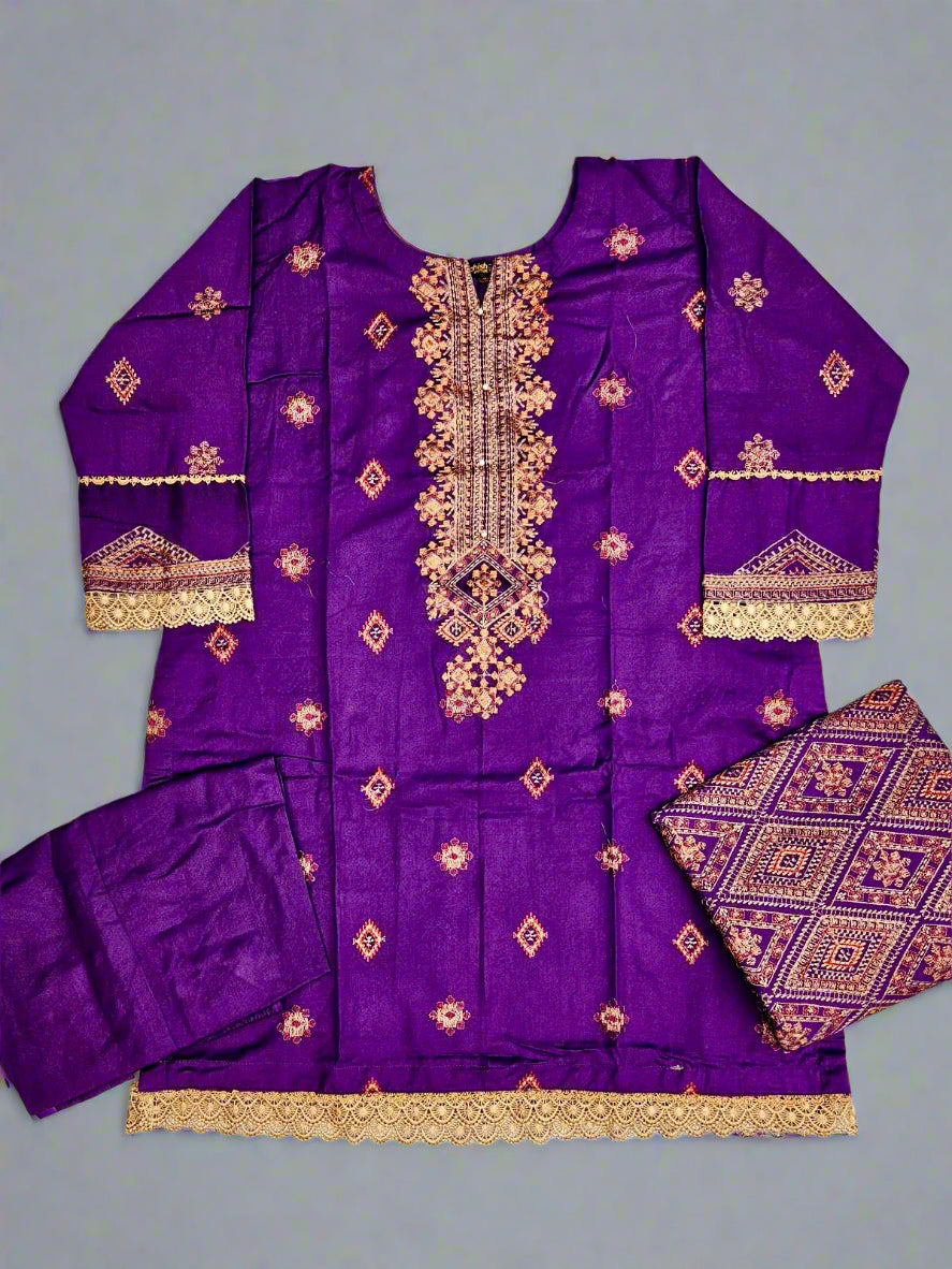 Navy Blue Stone Work Kameez | Silk Sharara & Chiffon Dupatta | 4-Side Embroidered | Sizes Up to 8XL