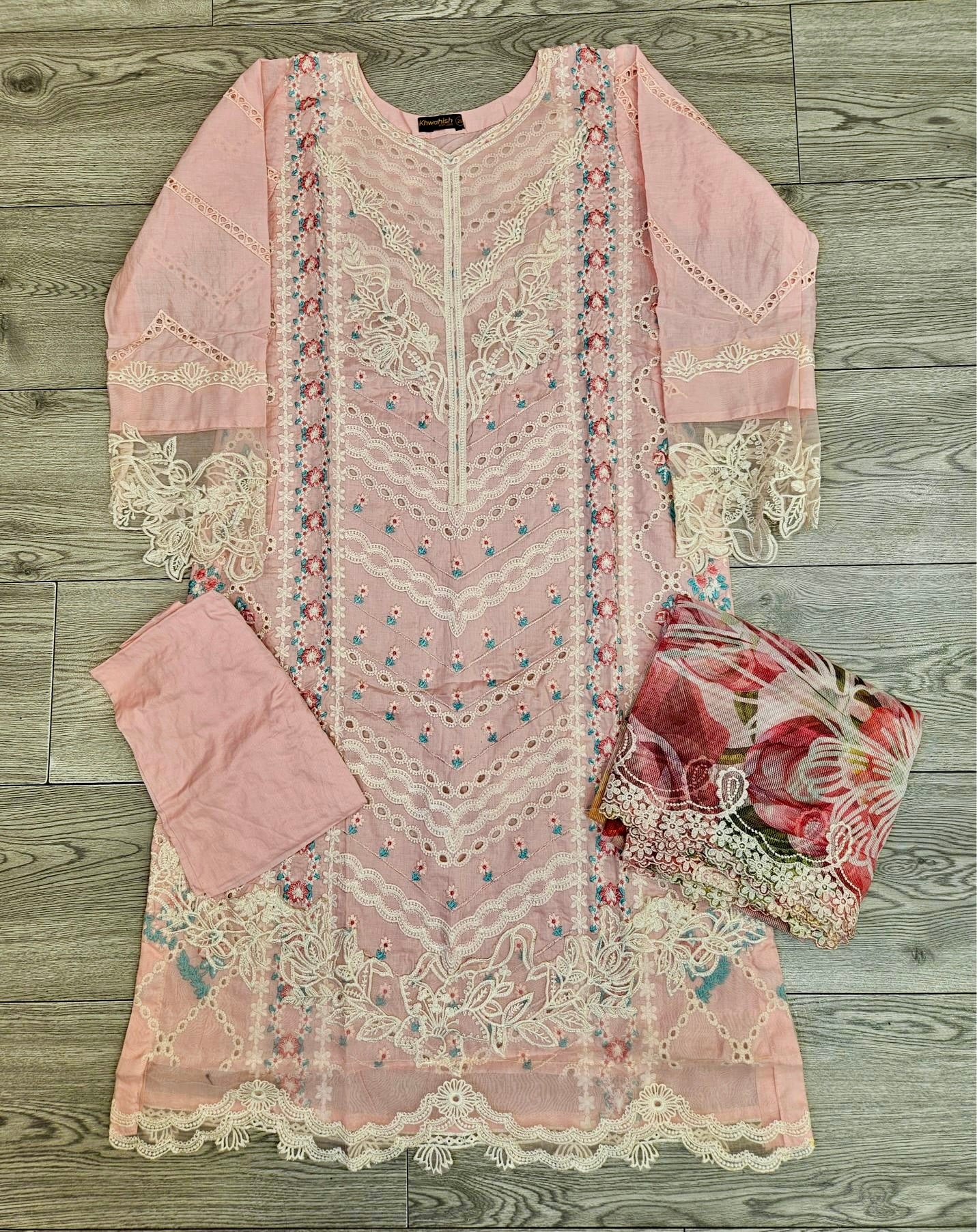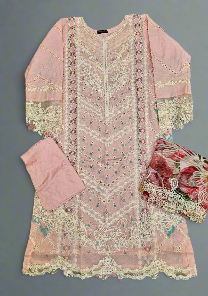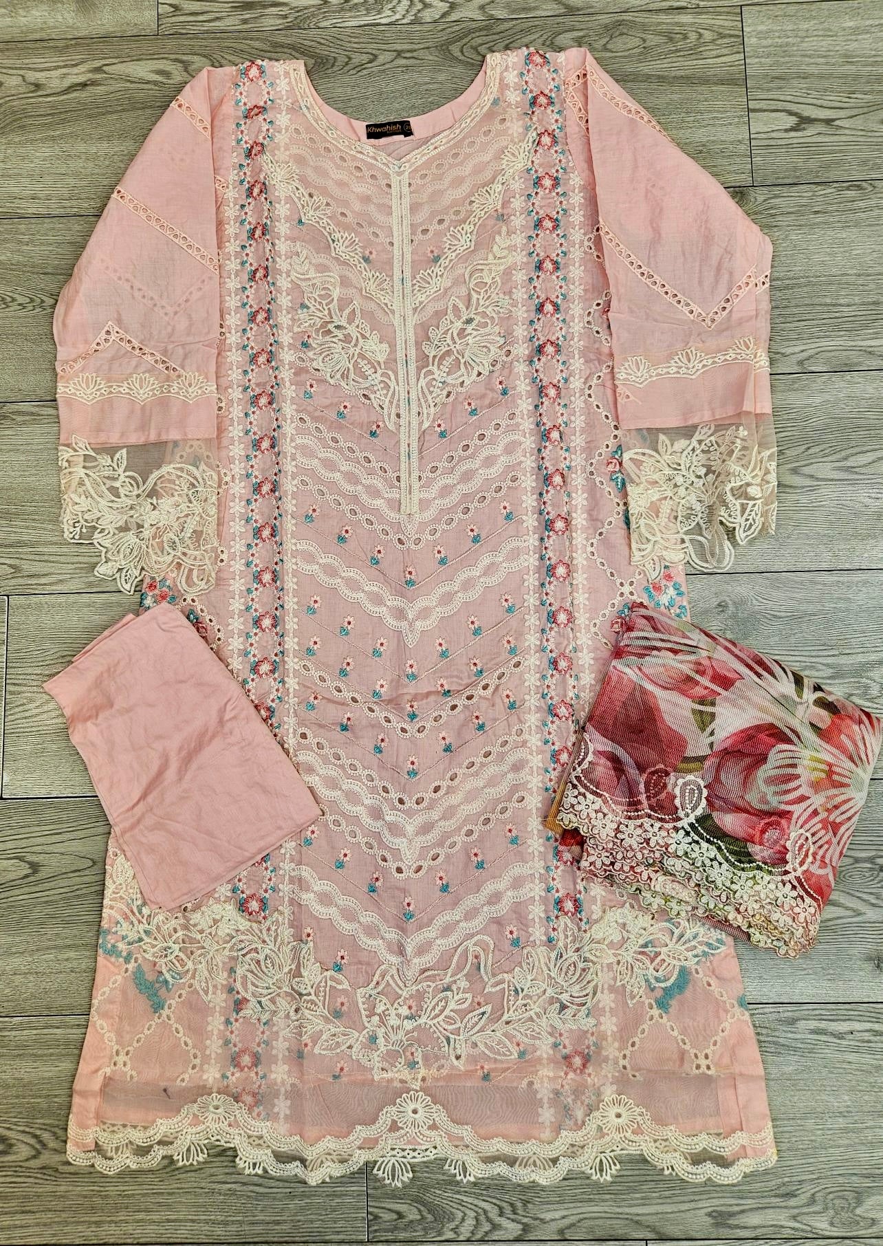 CRM Rose pink colour laser cut chikan embroidery in thread and sequins shalwar kameez in cotton fabric