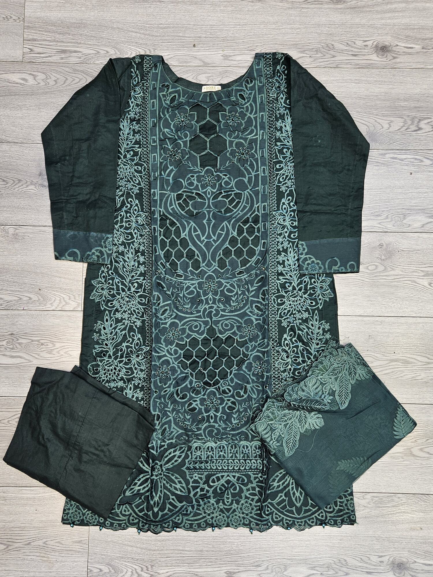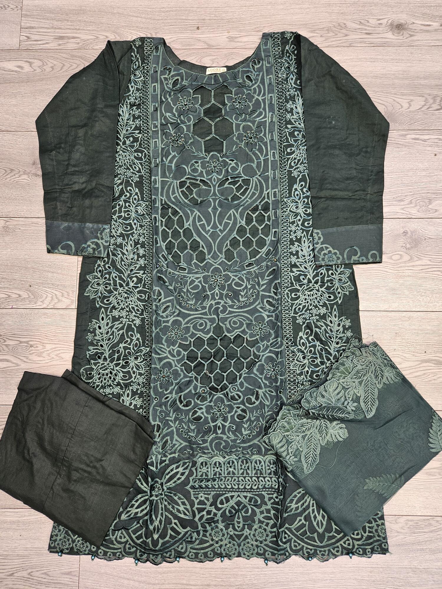 Navy Blue Stone Work Kameez | Silk Sharara & Chiffon Dupatta | 4-Side Embroidered | Sizes Up to 8XL