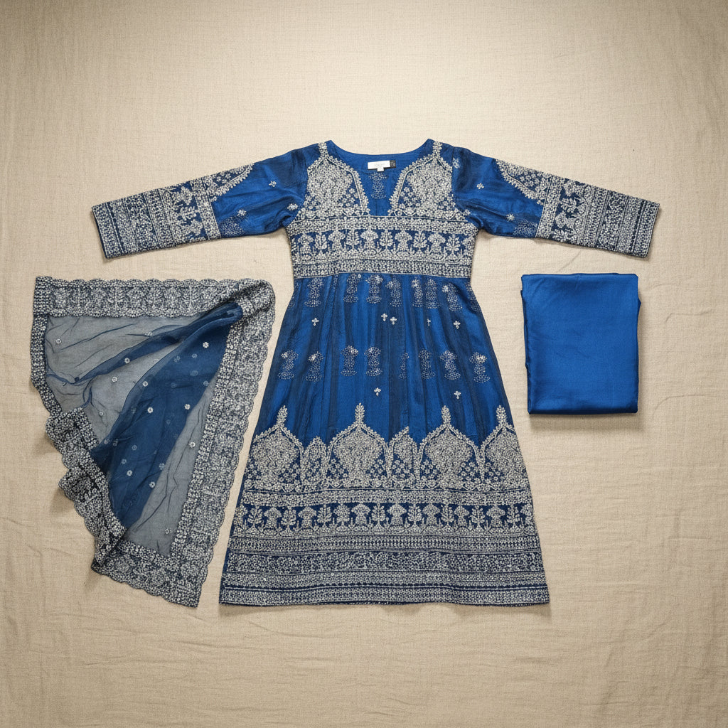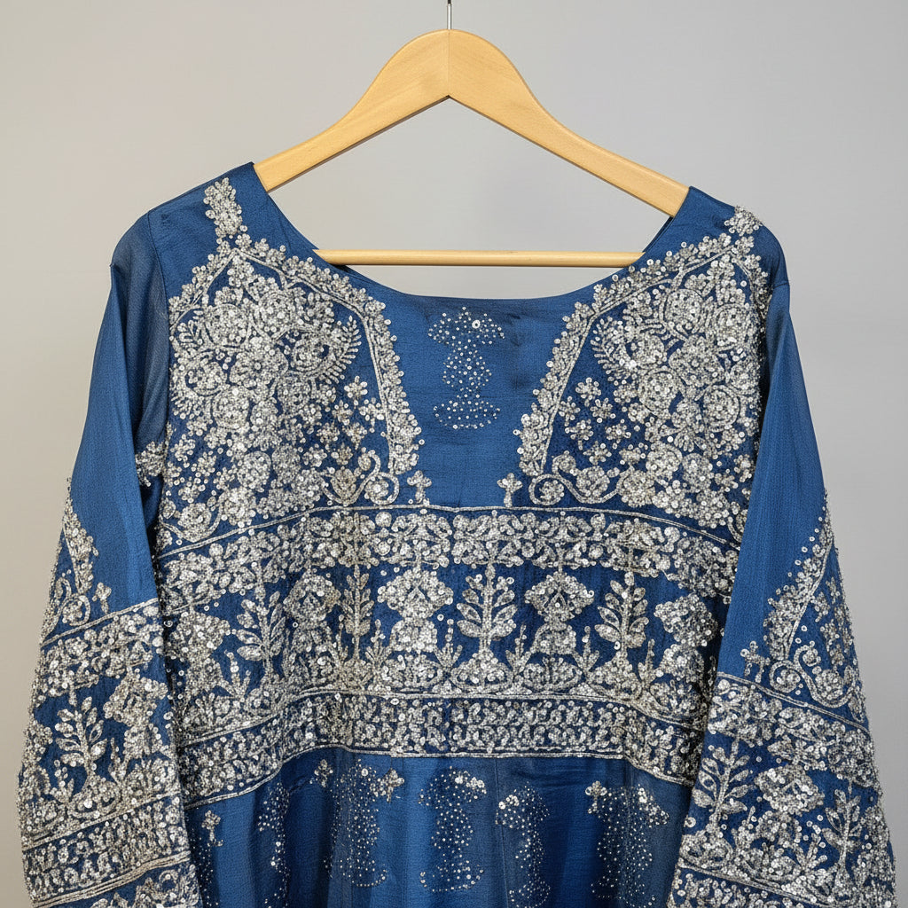 AFZ Celestial Dream | All-Over Embroidered Maxi Dress & Pastel Blue Dupatta | Sizes 8XL