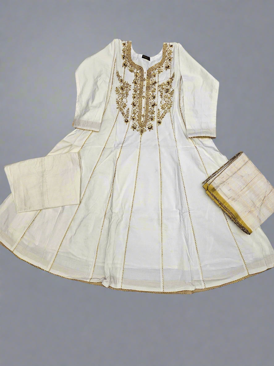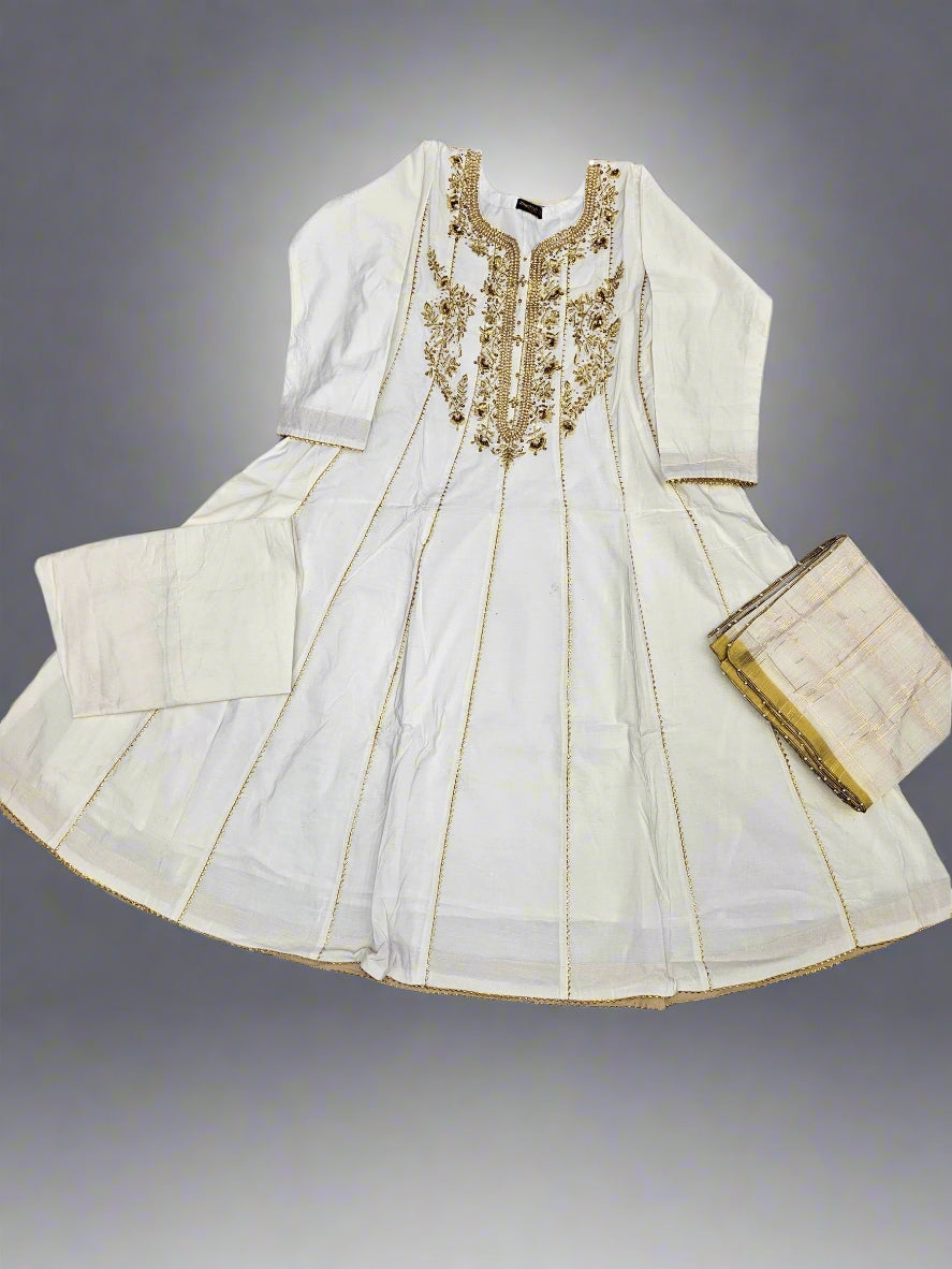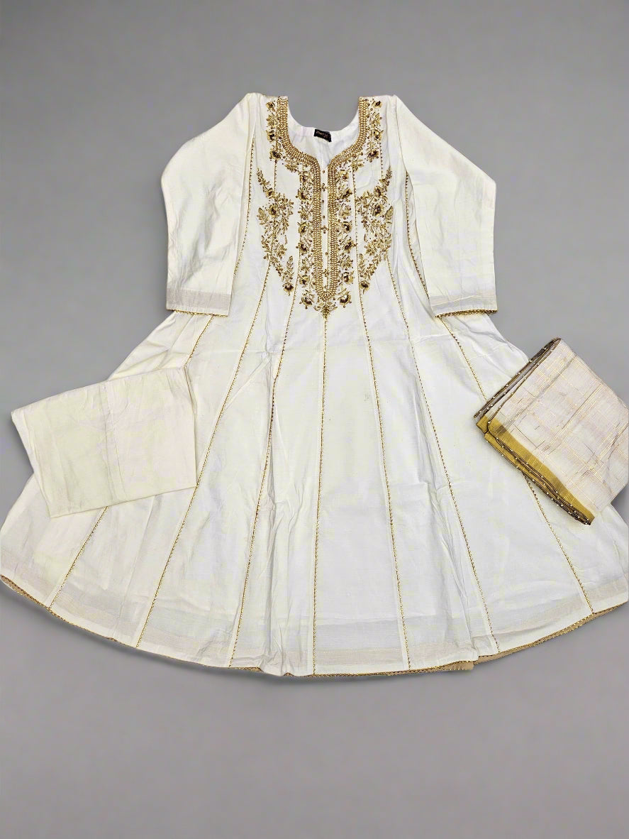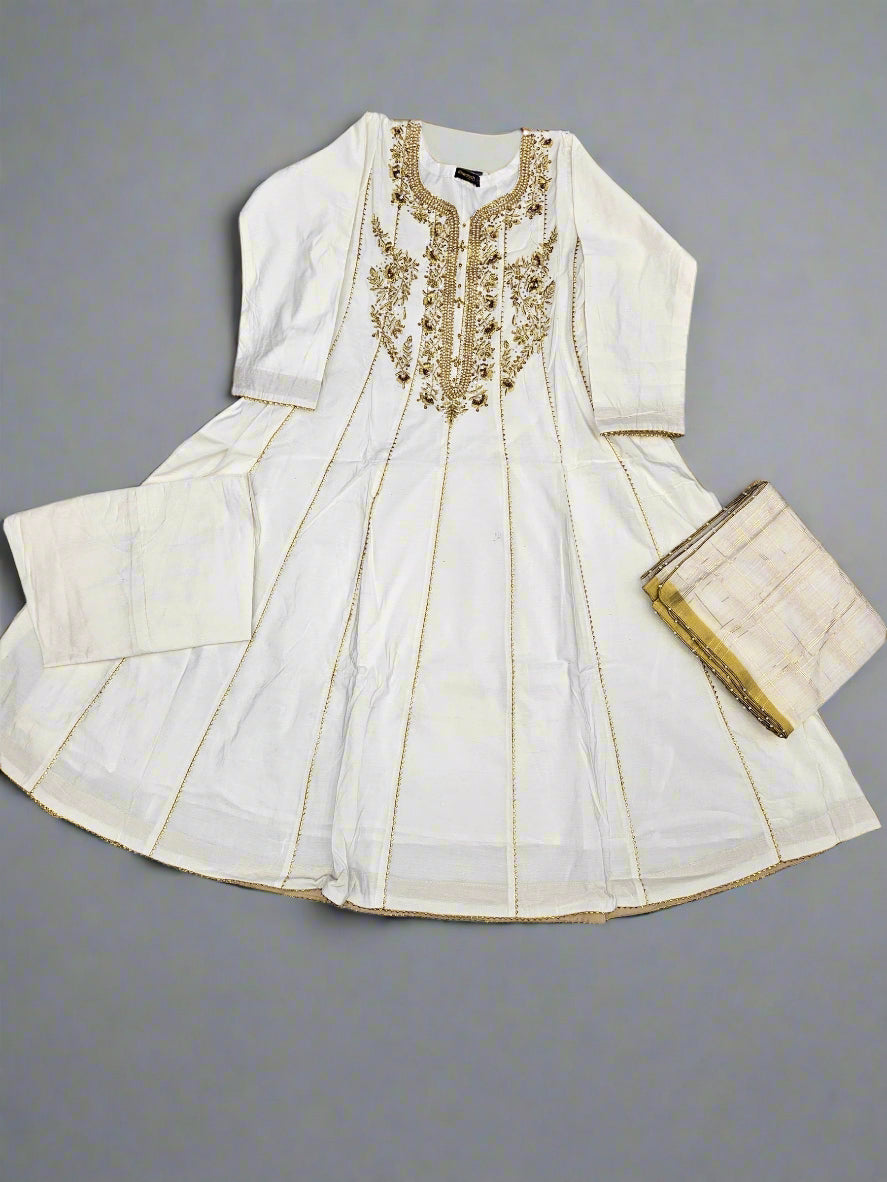 CHRZ Nude Peach Hand Embellished Chiffon Kameez | Embroidered Dupatta & Trousers | Front Split Design